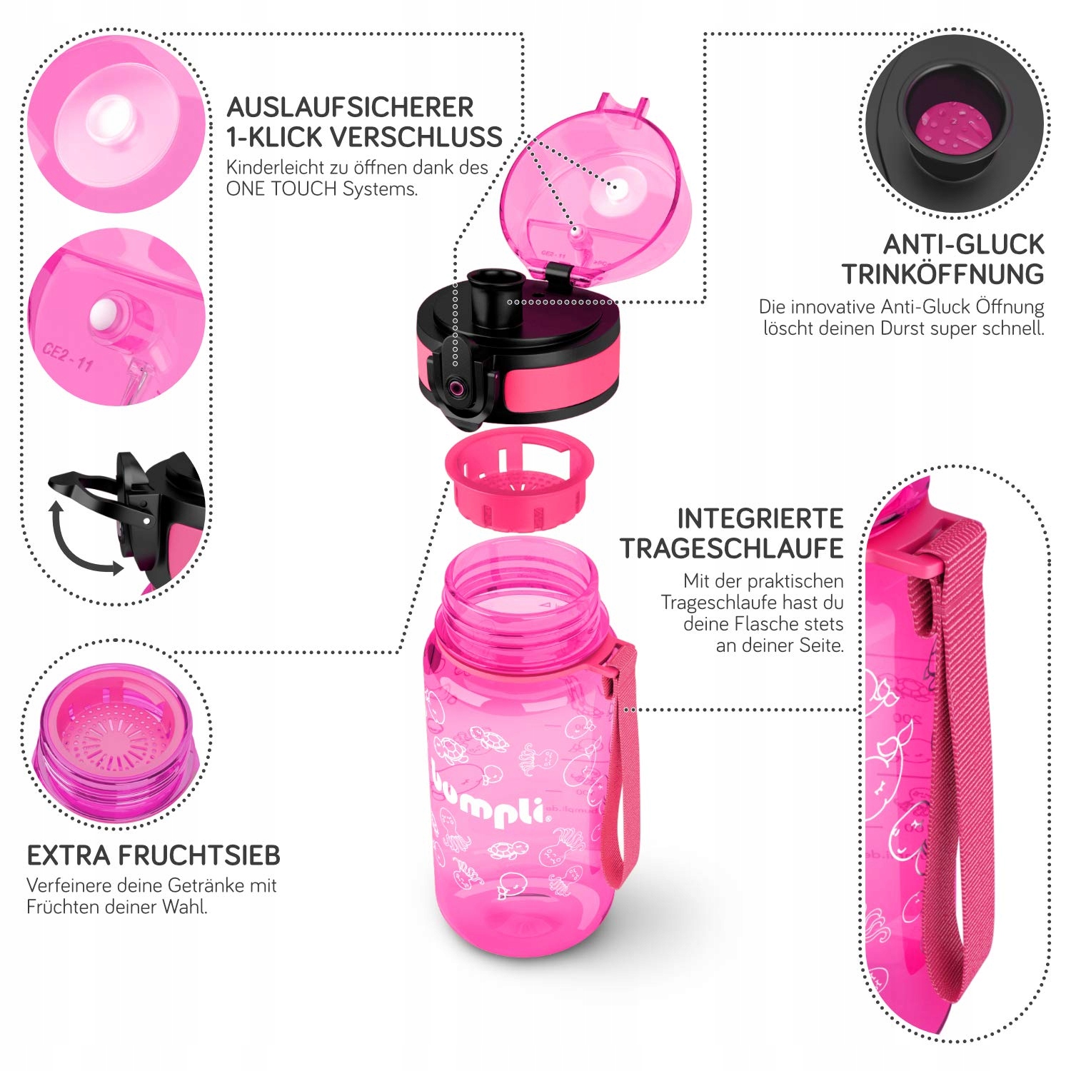 З цією пляшкою для пиття, що не проливається, у шкільному портфелі чи рюкзаку для дитячого садка ваша дитина може із задоволенням бігати, битися та дико виходити. Закривається в 1 клацання, що дозволяє легко відкрити пляшку однією рукою.