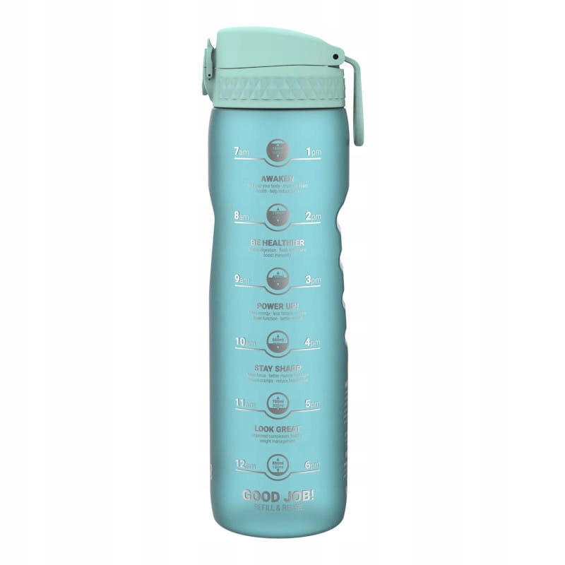 На пляшці є мотивуюча інформація про здоров’я, надрукована англійською мовою, і шкала на зовнішній стінці, яка обов’язково нагадуватиме та спонукатиме вас пити багато води протягом дня!