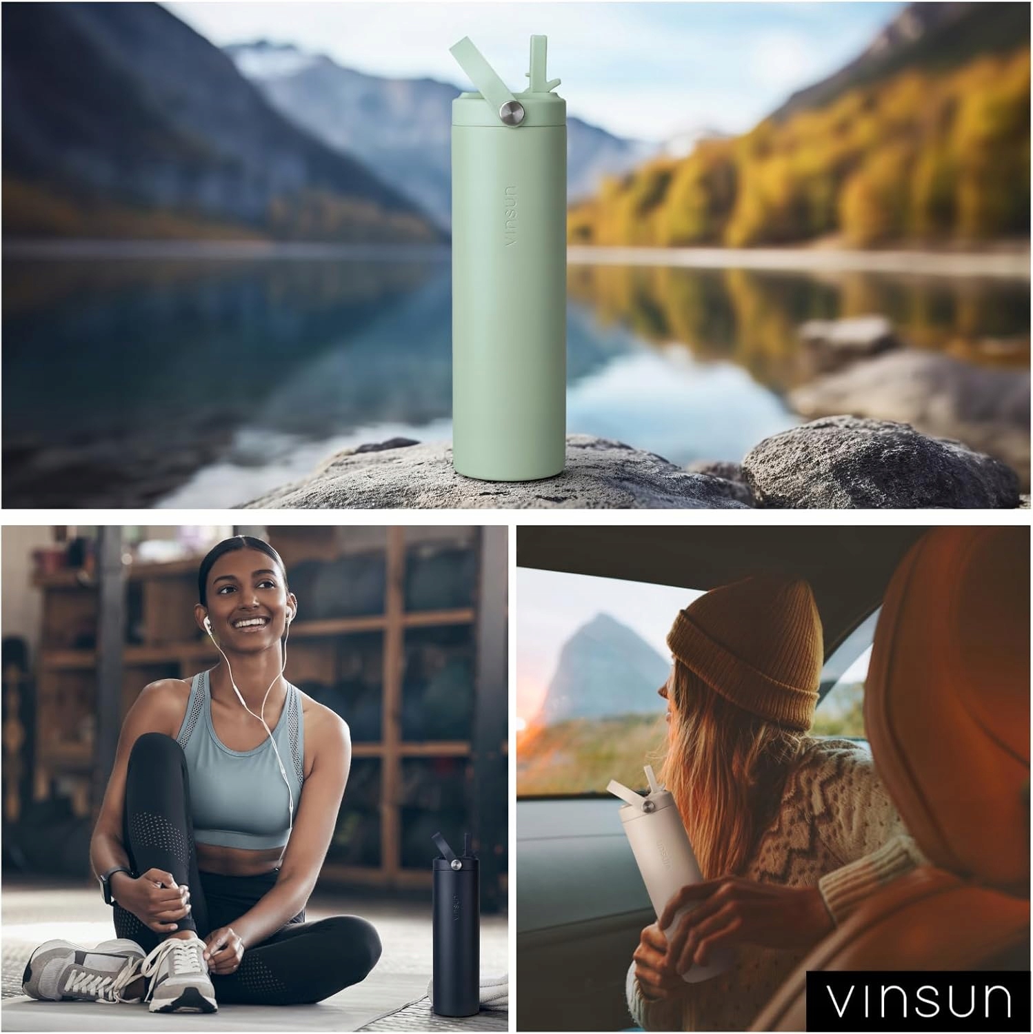 - Багаторазова пляшка для напоїв з нержавіючої сталі з сучасним дизайном. Прості пастельні кольори ідеально підходять для роботи, фітнесу, йоги, велосипедних прогулянок чи походів.
