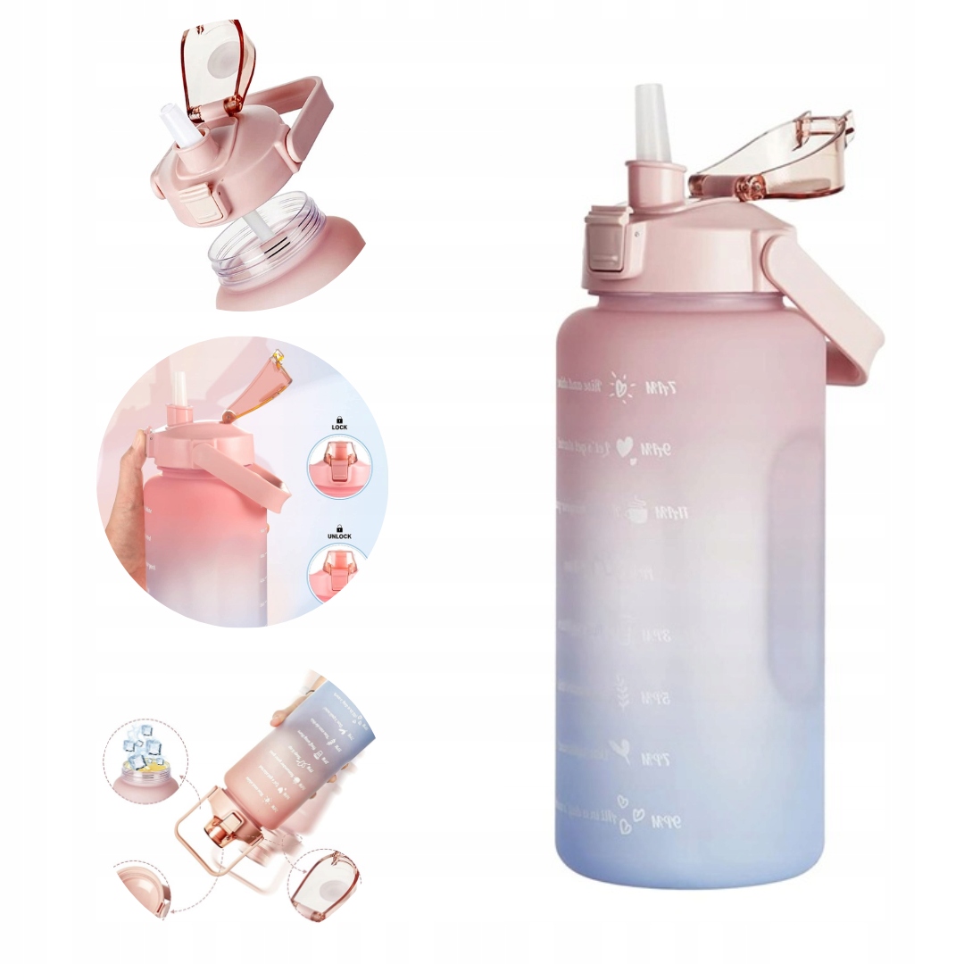 Продукт, який вам представлений, - це пляшка води з мірною чашкою 2 літри. Чи було для вас випробуванням пити воду? З цією пляшкою це буде дитячою грою! На пляшці є мотивуючі тексти, які роблять пиття ще приємнішим! У пляшці є мірна чашка, яка показує кількість випитої води. Щоб зробити питну воду смачнішою, ви можете додати м'яту, лимон або ваші улюблені добавки! Пляшка для води ідеально підходить для спортзалу або для цілого дня в офісі на роботі. Виріб призначений для ручного прання в теплій, але не гарячій воді. Не рекомендується мити в посудомийній машині, не заморожувати, не варити, не ставити в мікрохвильову піч, не використовувати сильні чистячі засоби та гострі пральні машини. Пляшка виготовлена з високоякісних матеріалів і прослужить нам довго! Замовте свою пляшку для води сьогодні та скористайтеся цією унікальною ціною!