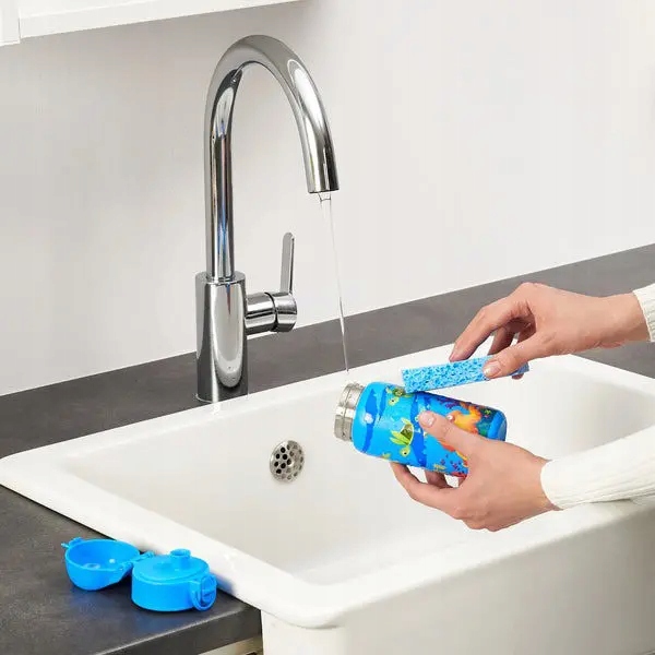 100% герметичні пляшки з нержавіючої сталі об’ємом 400 мл з плавним потоком для гігієнічного зволоження без проливання, верхня кришка, що повністю відкидається, дозволяє використовувати одну руку під час подорожі.