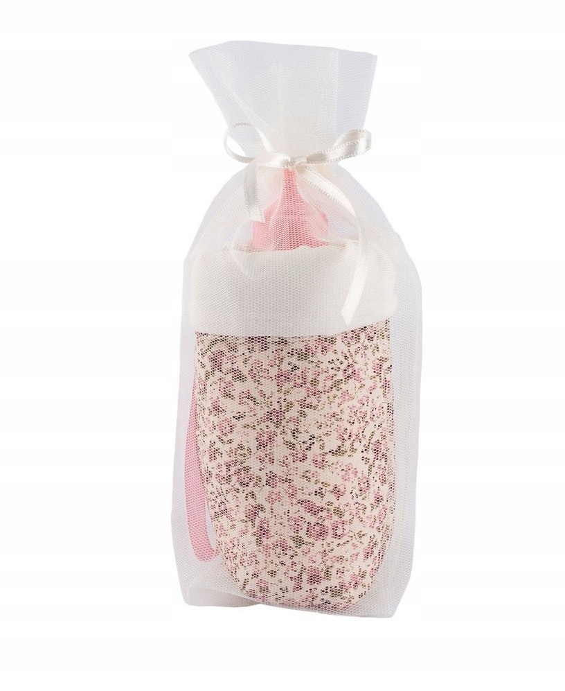Пляшка була розроблена для ляльок від 36 до 50 см. Він упакований у сумку з тюлю, прикрашений блискучим атласним луком.