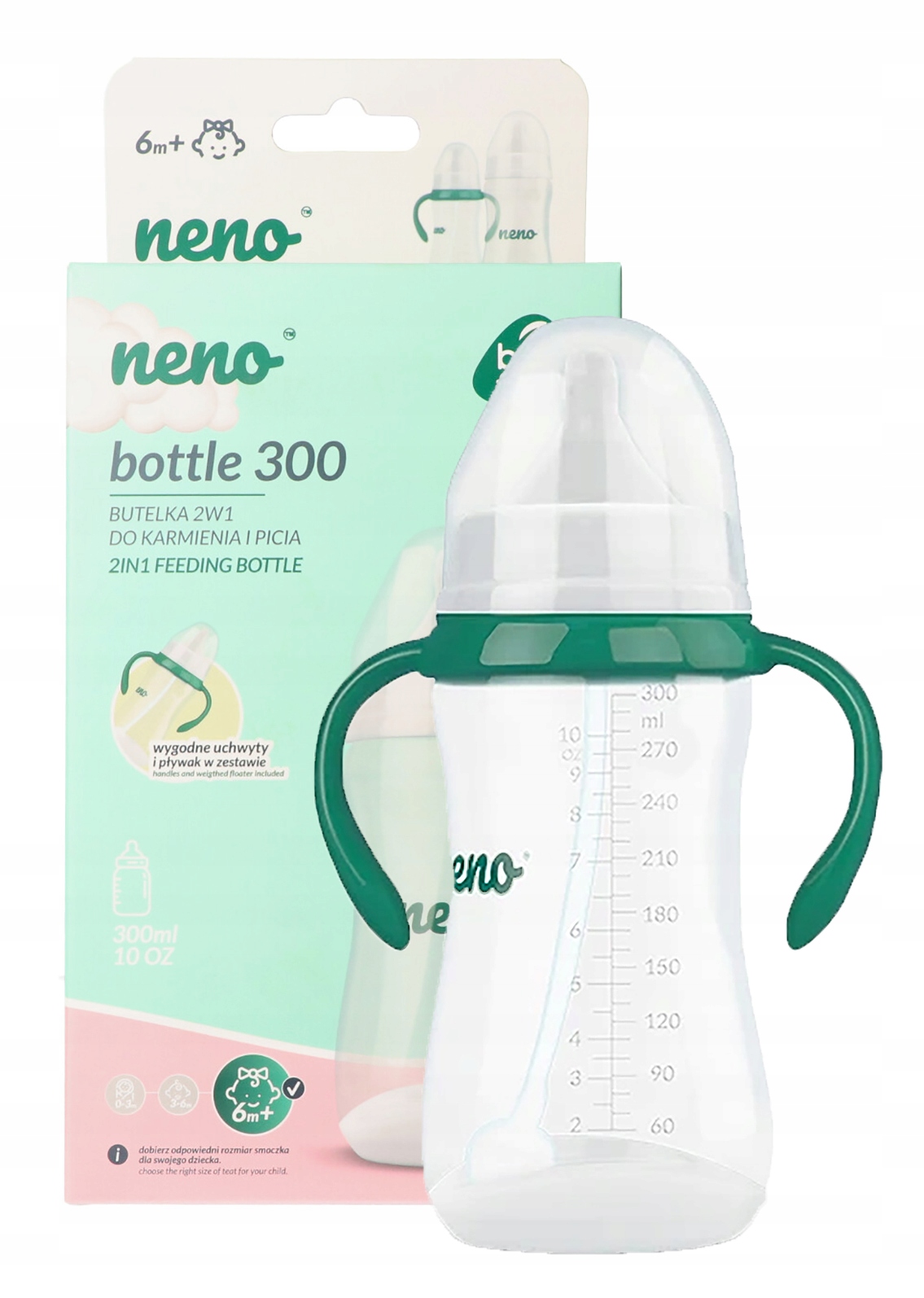 Дитячі пляшечки з серії Neno Bottle зручні як для дитини, так і для батьків. Ергономічна форма пляшки забезпечує зручне захоплення дорослим, а додаткові вушка є чудовим вступом до навчання самостійного пиття. Зручні і широкі вушка дозволяють легко міцно тримати пляшку. Ручки не інтегровані в пляшечку, тому їх можна зняти під час миття пляшечки або самостійного годування дитини.