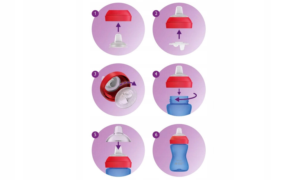 Кухоль Philips Avent із носиком складається лише з кількох частин, що робить його надзвичайно простим у збиранні. Він оснащений гігієнічним ковпачком, який допомагає підтримувати мундштук в чистоті, а всі його компоненти можна мити в посудомийній машині, що забезпечує зручність використання.
