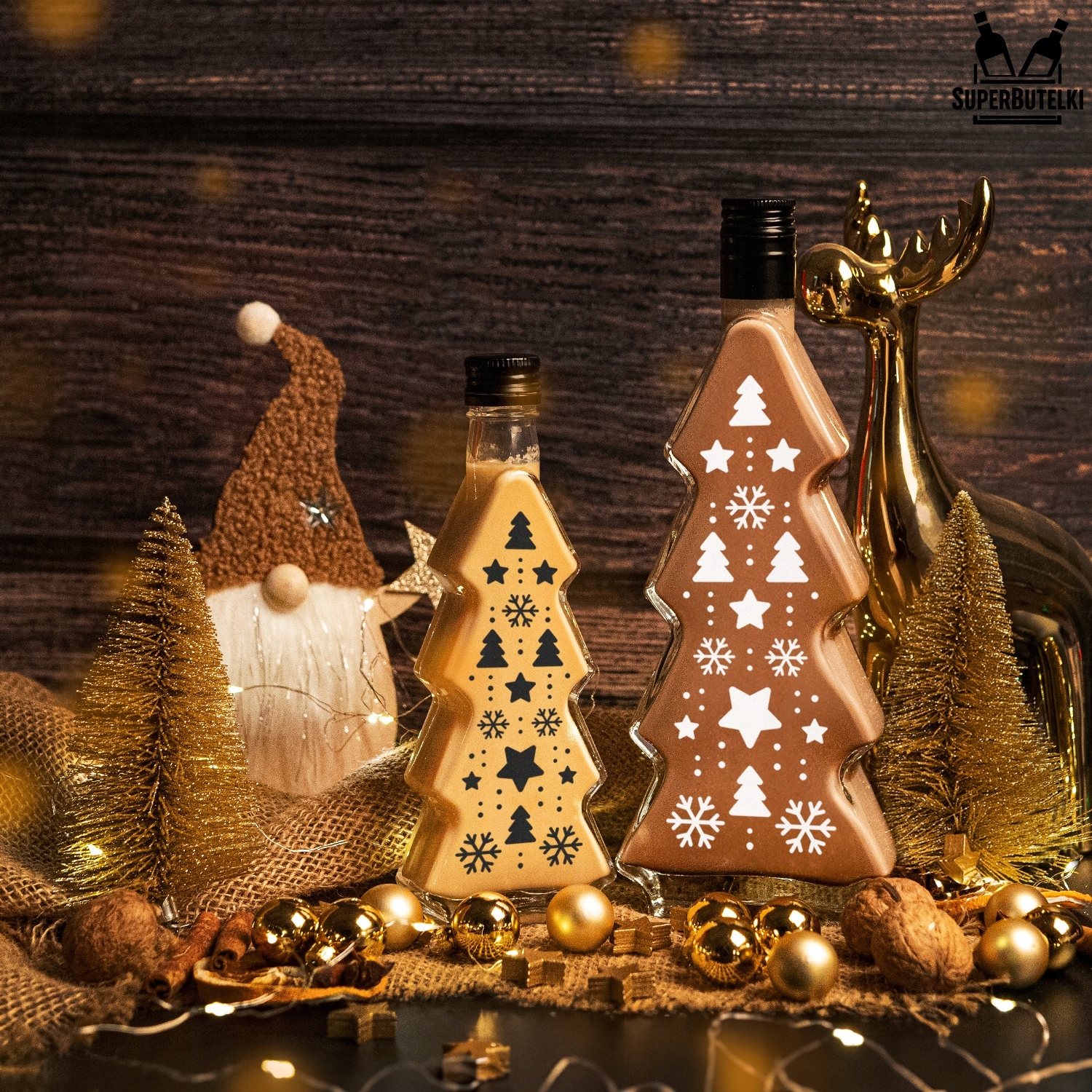 ПЛЯШКА РІЗДВОВА ЯЛИНКА 250 МЛ ДЛЯ ЛІКЕРУ ВИНА СОКУ ЛІКЕРІВ З ПРИНТОМ