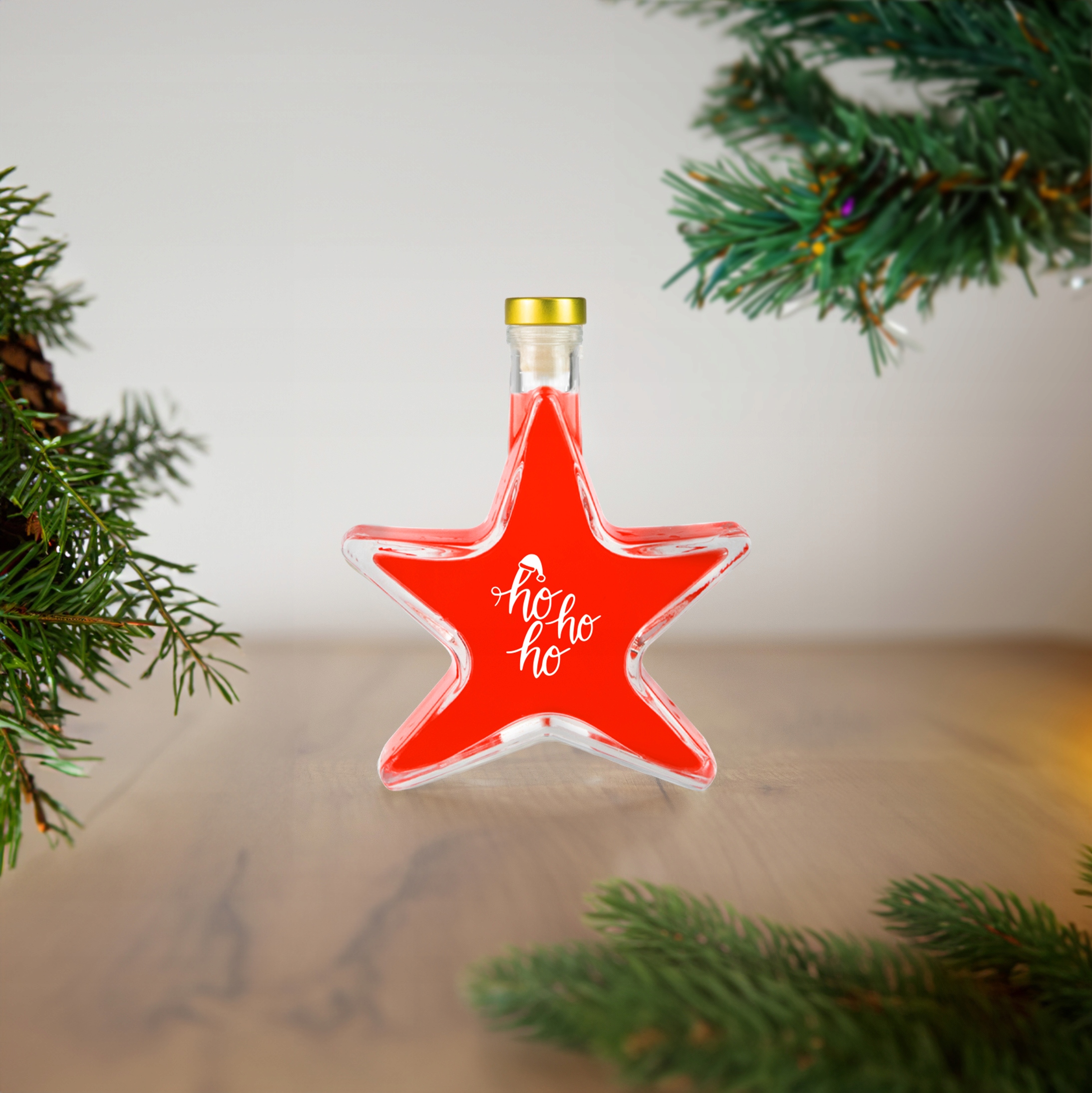 Пляшка РІЗДВЯНА ЗІРКА 200 мл З ПРИНТОМ для лікерів, вина
