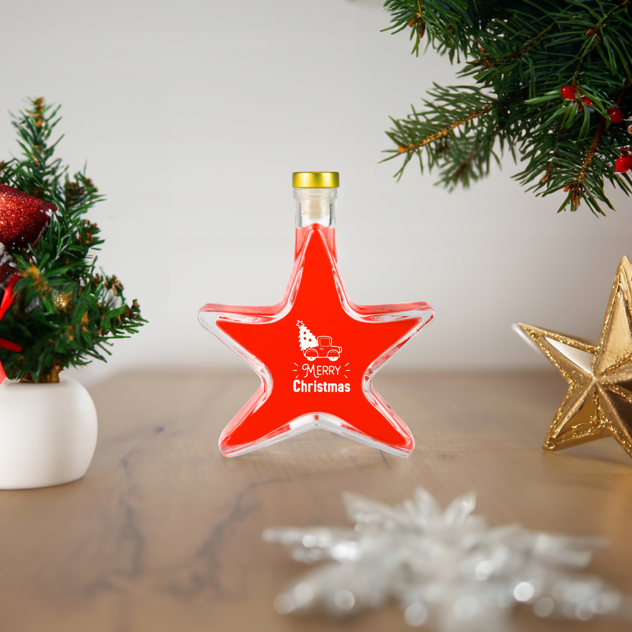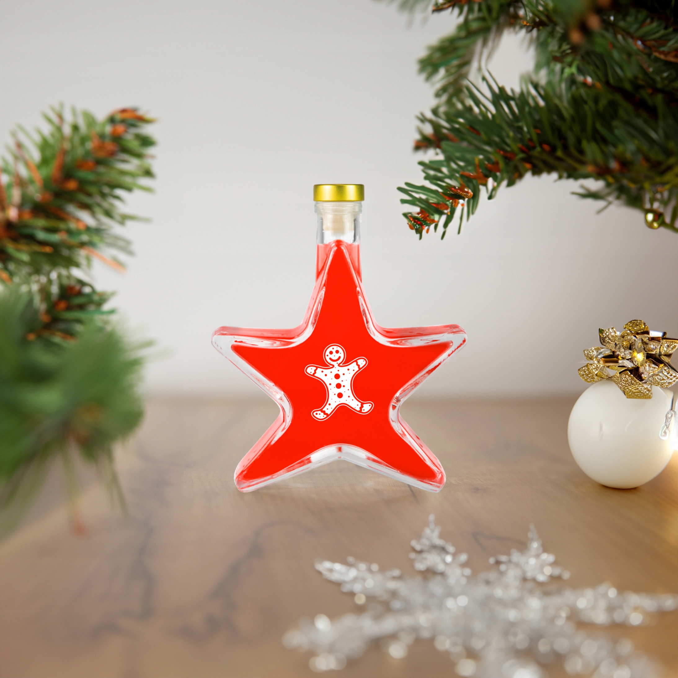 ☃️ Зірка – це пляшка з дуже товстого високоякісного скла. Завдяки цьому ваші напої не тільки виглядатимуть унікально, але й будуть повністю захищені. Декоративна пляшка у формі зірки, наповнена домашнім алкоголем, також є чудовою ідеєю для різдвяного подарунка для ваших близьких.