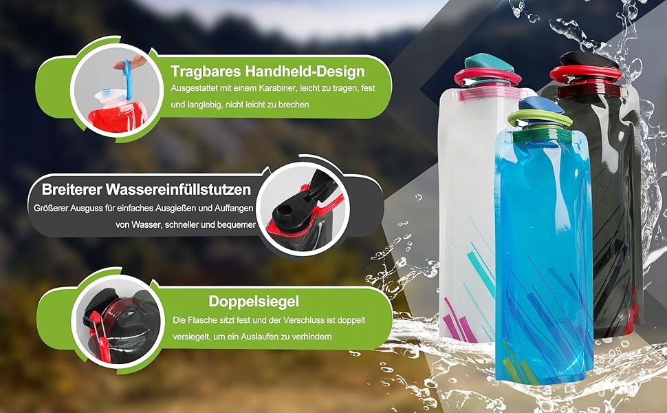 Складні, легкі, гнучкі - після спустошення ви можете згорнути або розплющити їх - ви заощадите місце у своєму рюкзаку чи валізі.