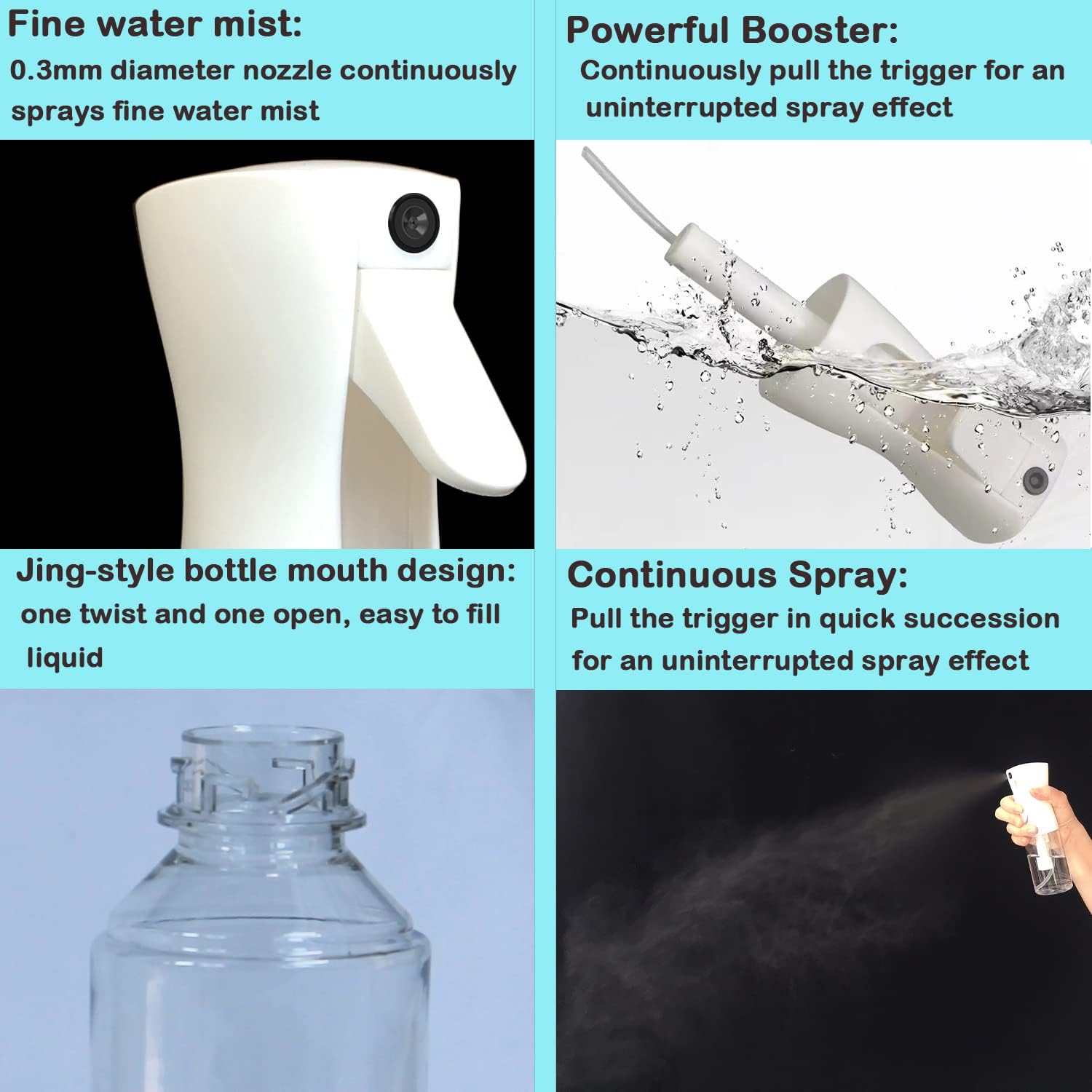 Сучасна пляшка з розпилювачем, яка створює делікатну, безперервну туман без використання шкідливих приводних газів. Ідеально підходить для догляду за волоссям, догляду за шкірою, косметикою, очищенням та поливами.