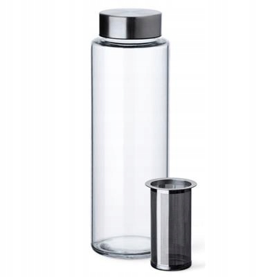 Скляна пляшка з пластиковою/металевою кришкою, ситечком і неопреновим футляром - для води, соку, чаю, кави