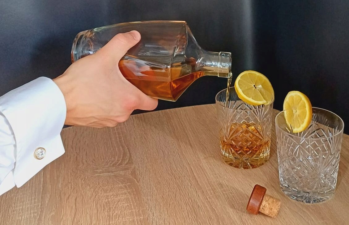 Ми пропонуємо пляшку Koneser об’ємом 750 мл у наборі з ідеально прилягаючою пробкою, яка гарантує, що вміст не розллється в невідповідному місці.