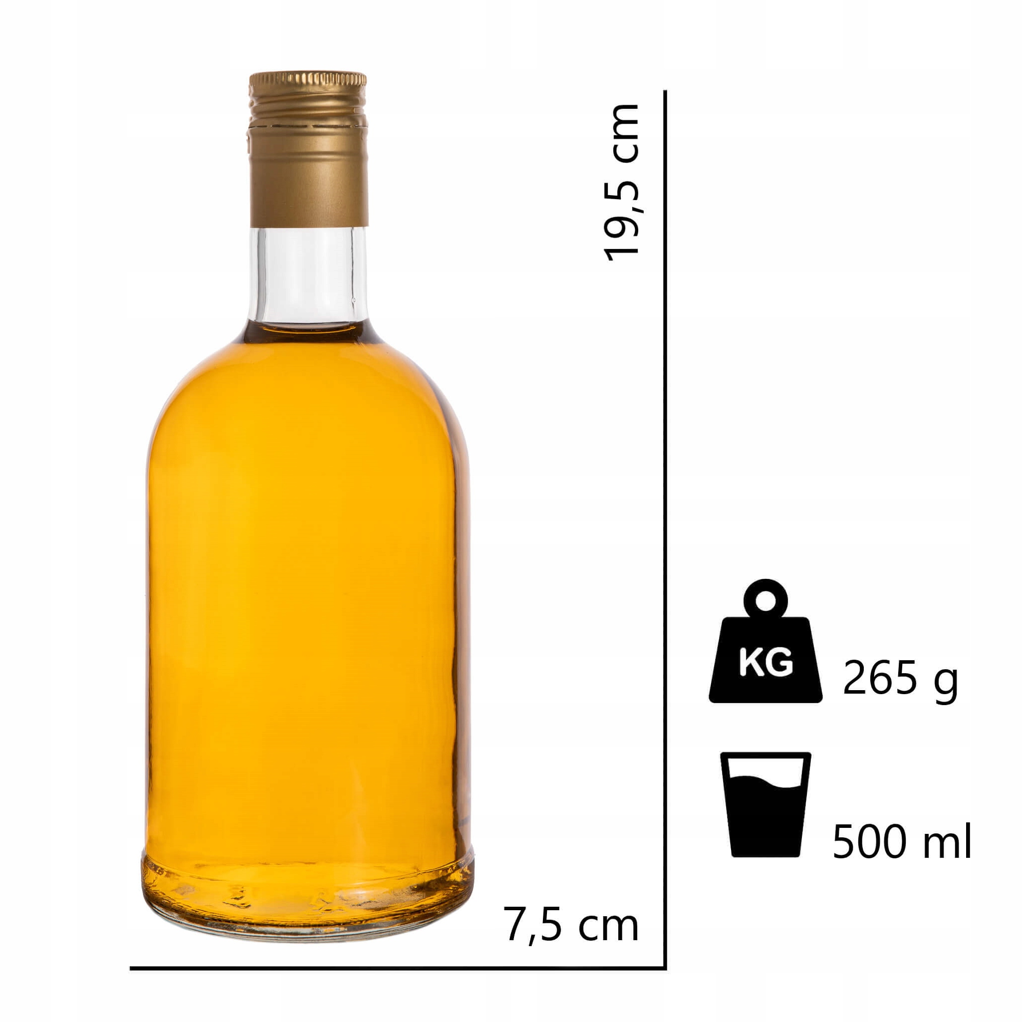 Скляна пляшка місткістю 500 мл з гордістю представить напій, у який налито в неї. Елегантна та дуже зручна пляшка стане чудовою упаковкою для смачних вин, горілок, лікерів та самогону.