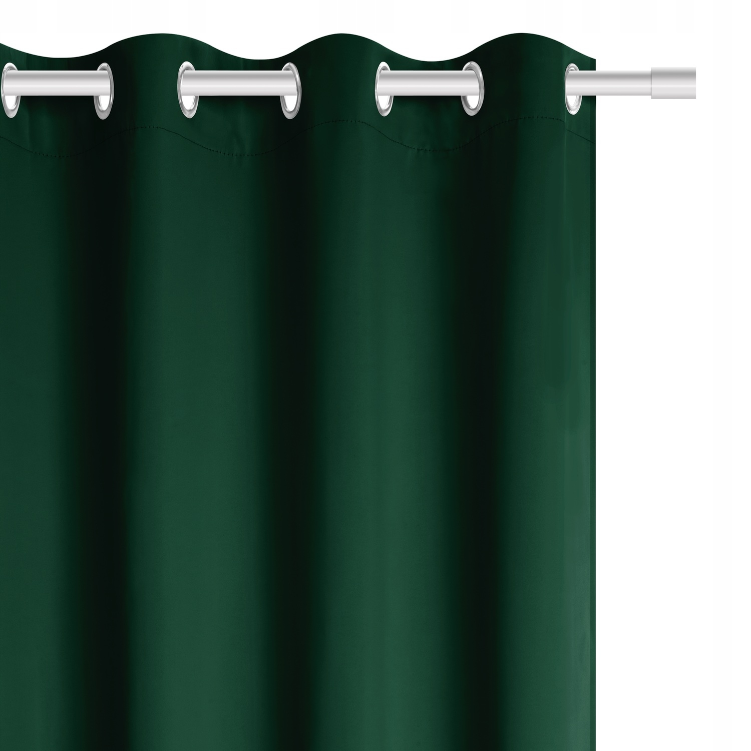 Має стандартні розміри 140х250 см і елегантне кріплення у вигляді срібних кілець діаметром 4 см, які не створюють проблем при установці. на карнизах.