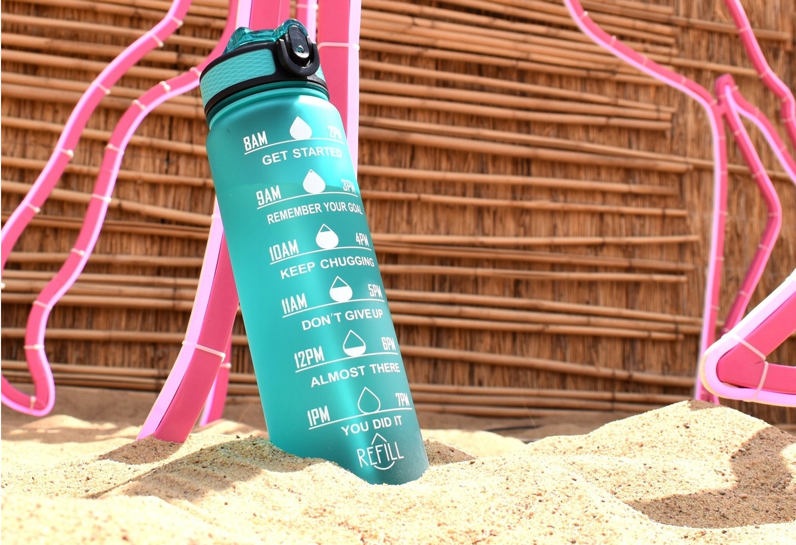 Пляшка з водою Miłoje для води, я буду пити з солом’яною мотиваційною фітнесом Turkus 1L