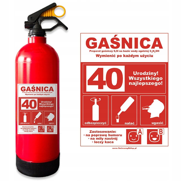 Не знаєте, як подарувати імениннику пляшку алкоголю весело? Бутафорський вогнегасник зі спиртовим вмістом і кумедним описом на етикетці - ідеальний подарунок.