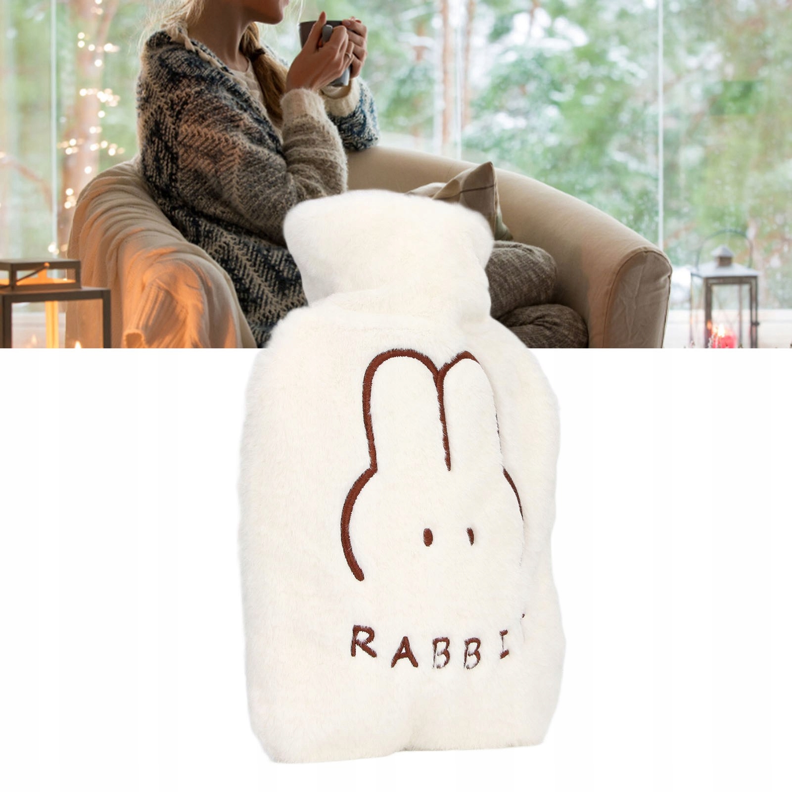 Пляшка з гарячою водою 1 л. Симпатичний знімний плюшевий чохол, потовщений ПВХ, протиошпарний мішок для гарячої води для рук, ліжко, зимовий білий