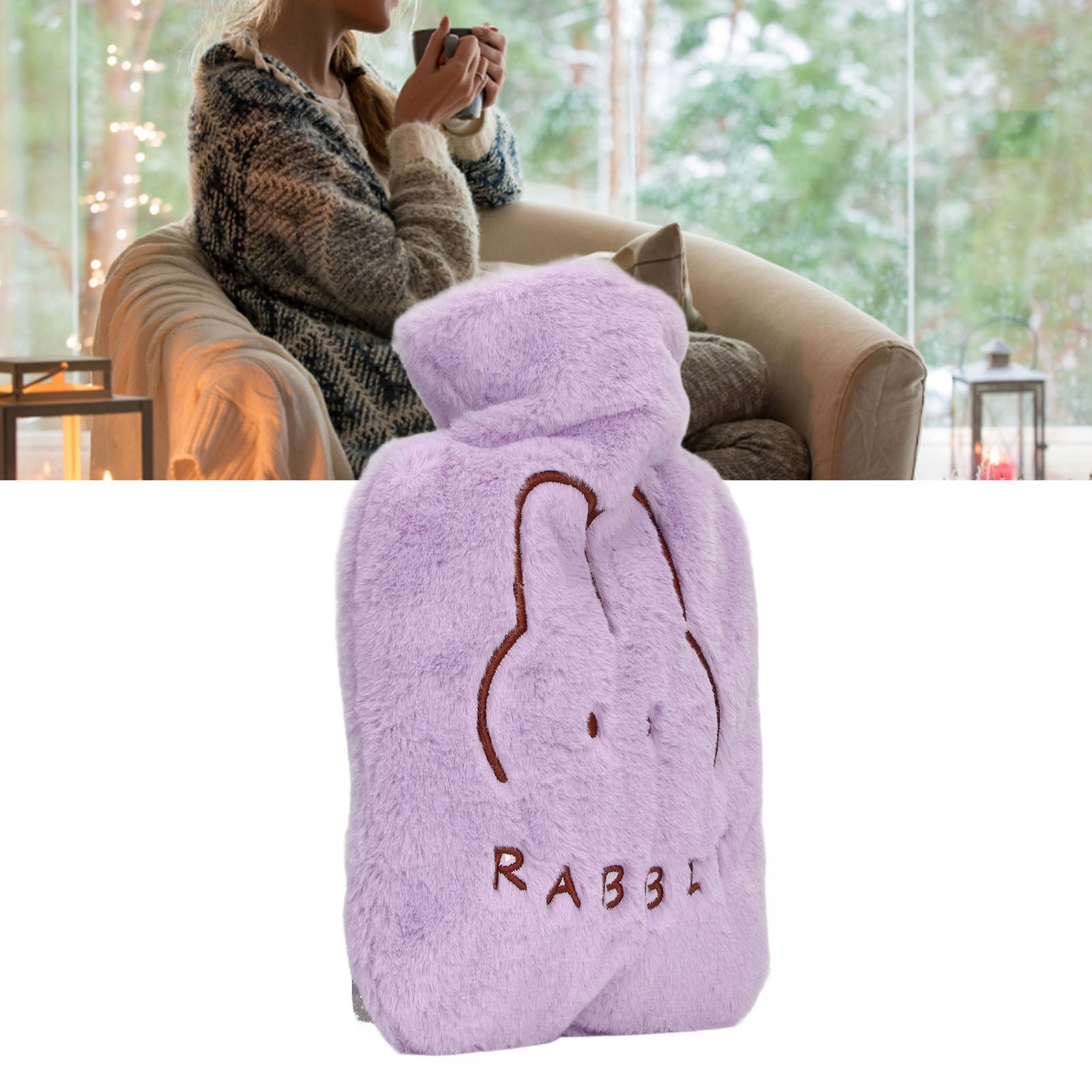 Пляшка з гарячою водою 1 л. Симпатичний знімний плюшевий чохол, потовщений ПВХ, протиошпарний мішок для гарячої води для рук, ліжко, зимовий фіолетовий