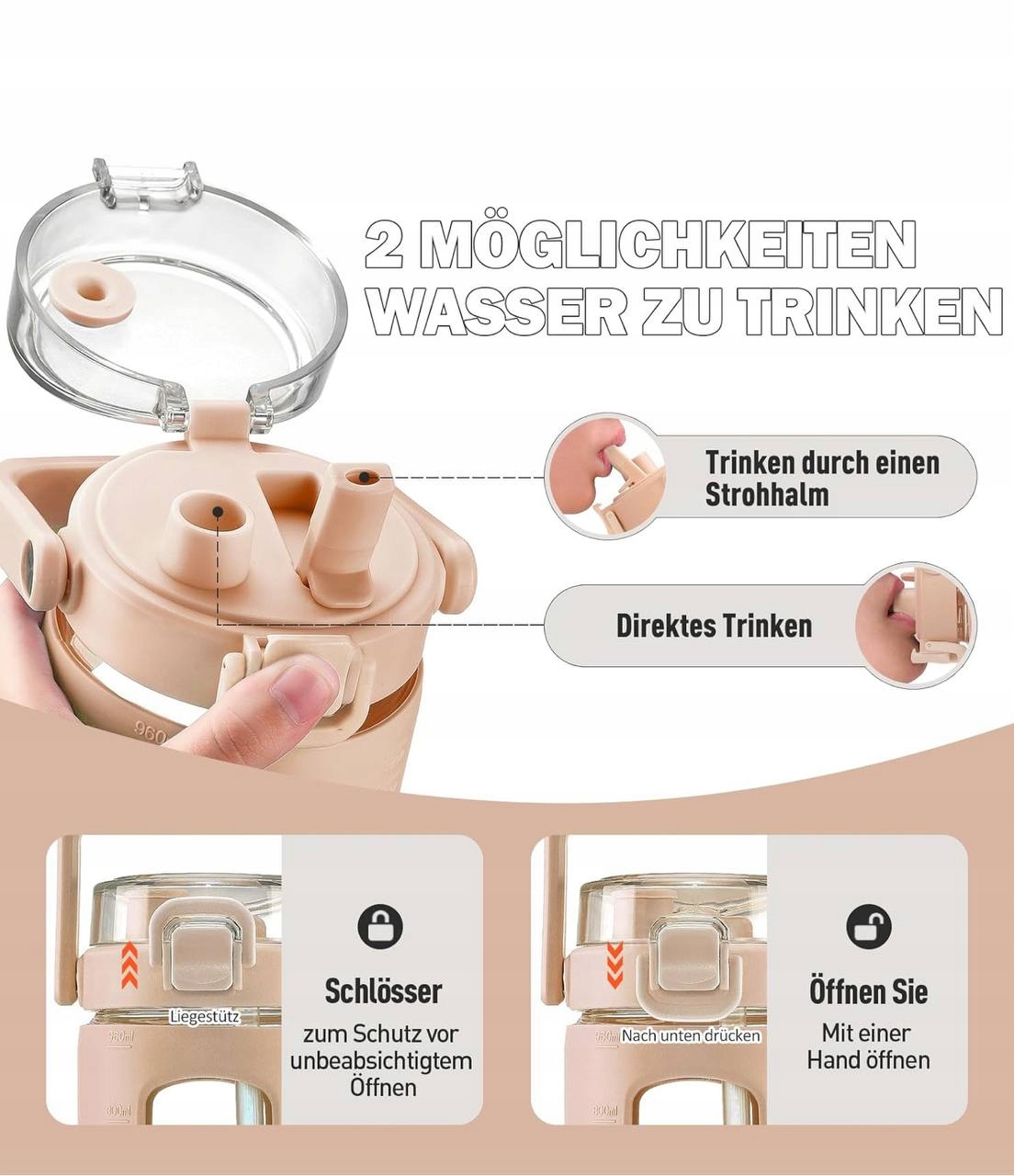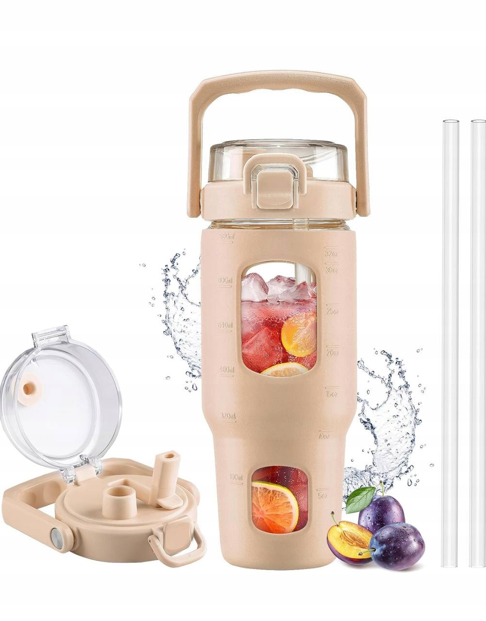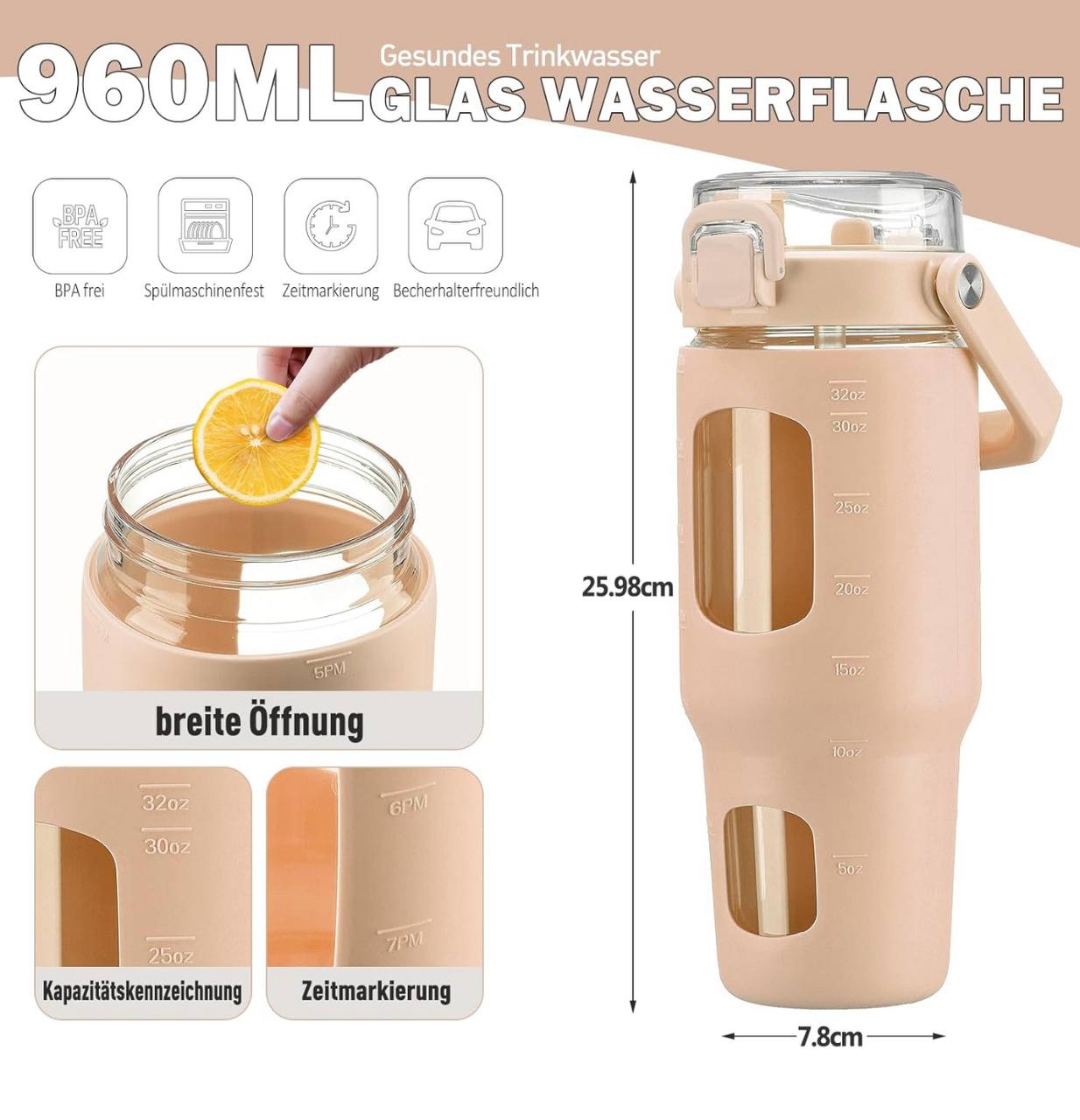 Пляшка з гідраглазичної скляної води 960мл з соломою