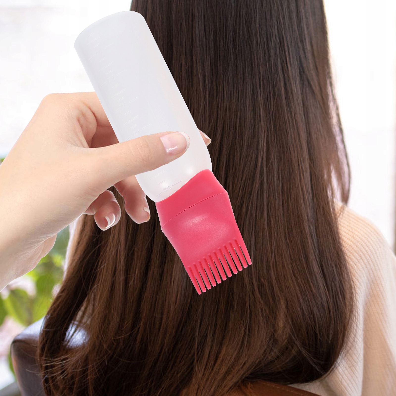 ✅ Пляшка з аплікатором-гребінцем для коренів дозволяє легко наносити фарбу для волосся або інші процедури безпосередньо на волосяні цибулини