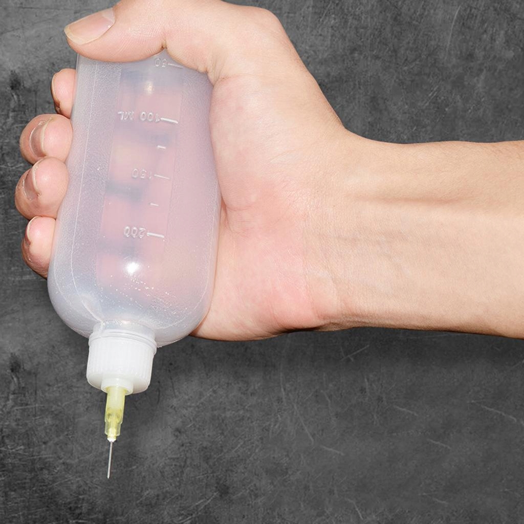 Розмір пляшки з клеєм аплікатора: пляшки можуть вмістити 200 мл рідини, що дозволяє нанести потрібну кількість. Дуже тонкий наконечник, хороший контроль потоку туші та інших рідин.