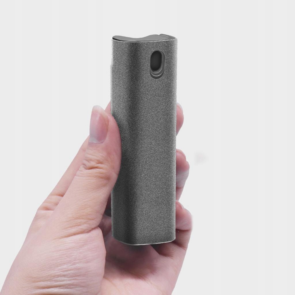 Пляшка з розпилювачем для очищення екрана та тканина. Засіб для очищення екрана телефону сірий