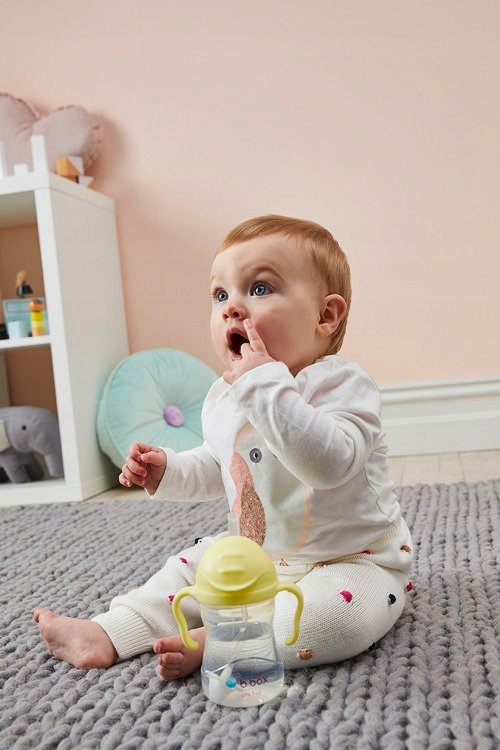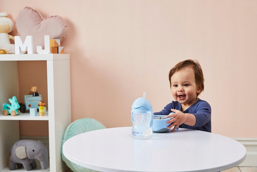 Інноваційна пляшка-непроливайка b.box із обважненою трубочкою, яка «слідує» за рідиною. Тепер доступний і в пастельних тонах. Його місткість і «технічні» рішення роблять його практичною першою чашкою для дитини.