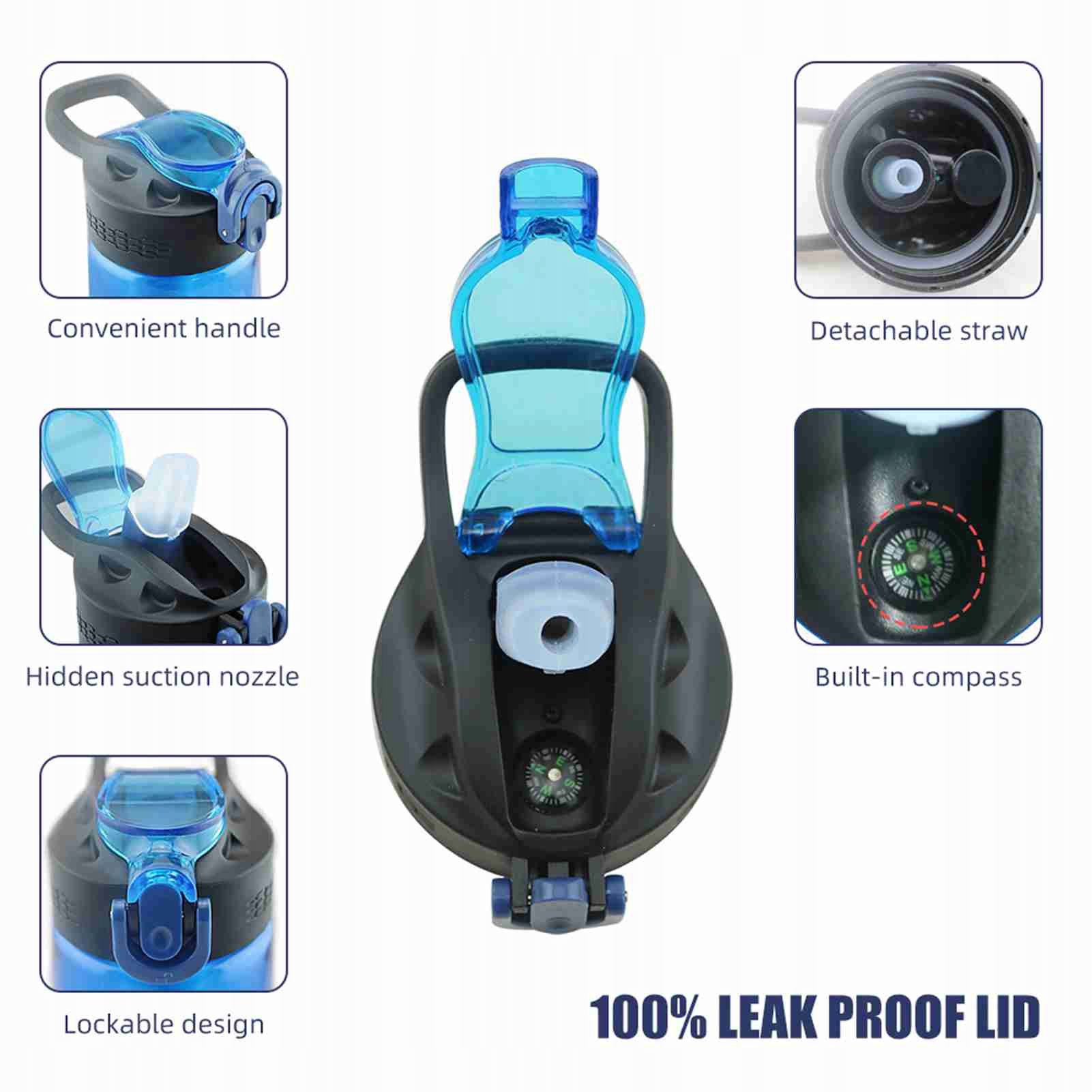 - Ця пляшка фільтра є ідеальним супутником для рюкзаків, походів, кемпінгу, надзвичайних ситуацій та інших заходів на свіжому повітрі. Оснащений безкоштовним BPA Trytan, PP та силіконом, він безпечний, стійкий до тепла, пошкодженого, легкого та міцного. 100% кришка жорсткості з ручкою для зручного перенесення, а вбудований компас -хороший помічник з надзвичайних ситуацій. Пийте очищену воду зовні за допомогою цієї відфільтрованої пляшки з водою.