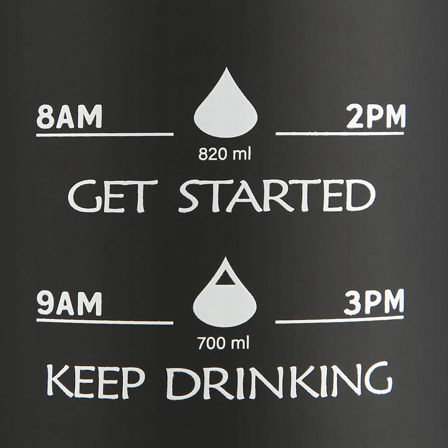 Пляшка оснащена щільним гумовим мундштуком у поєднанні з соломою та інноваційною системою відкриття. Щоб випити з пляшки, просто перемістіть шпильки вниз і натисніть кнопку, яка випускає блокаду отвору. У свою чергу, щоб захистити пляшку, рухайте вгору вгору. Додатковою перевагою є практичний ремінь на зап'ясті для полегшення транспорту. Весь виглядає надзвичайно функціонально і стильно.