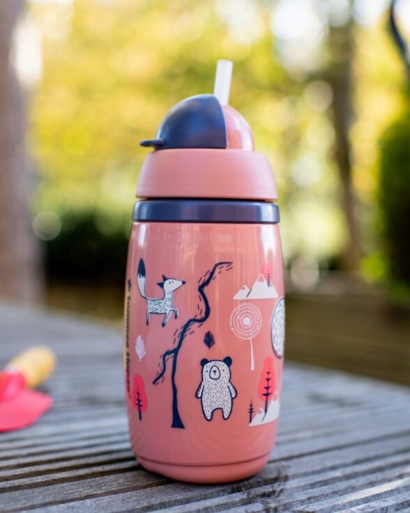 пляшка з водою з м'якою силіконовою соломою tommee tippee з практичним гігієнічним закриттям.