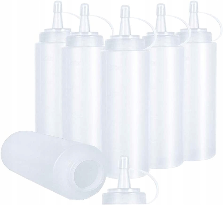 Кількість і розмір: що ви отримуєте - 6 пляшок для віджиму, кожна місткістю 250 мл, внутрішня висота 19 см і діаметр 5 мм. Підходить для сімей і заходів, таких як B. Житлові кухні, весілля, барбекю, кулінарія, ресторани тощо.