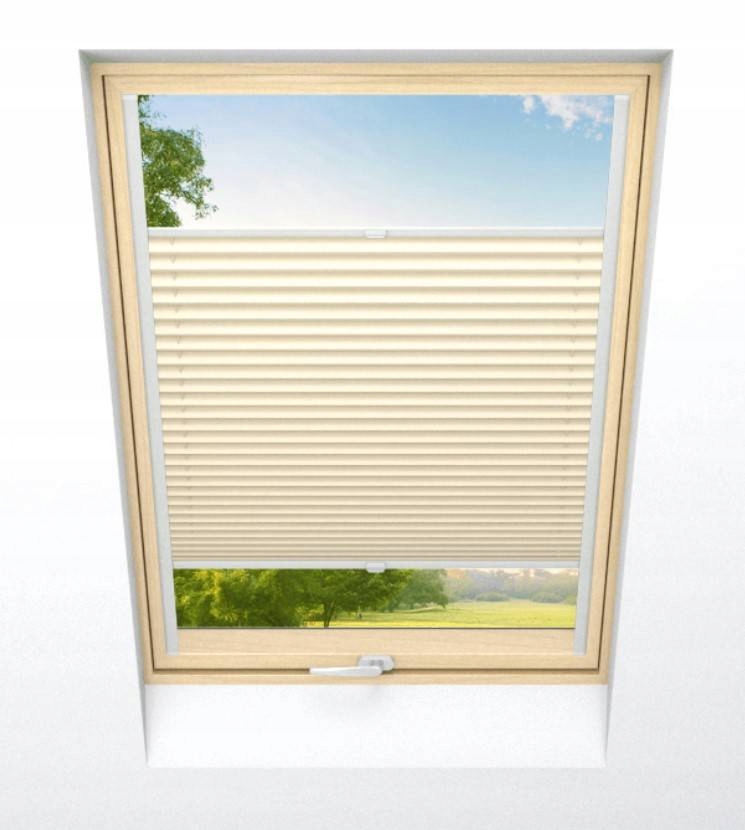 плісировані сліпи з посібниками для вікон на даху - це щит, присвячений людям, які цінують функціональність продукту та простоту встановлення. Сліпий має дві рухомі жолоби , тому ви можете покрити вікно як зверху, так і знизу та відрегулювати налаштування на вікні відповідно до ваших налаштувань.