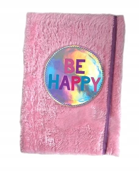 У ноутбуку є коротке, світло -рожеве хутро. У середині обкладинки є металеве коло, з написом, буде щасливим. Зручна еластична захищає ноутбук від випадкового відкриття.