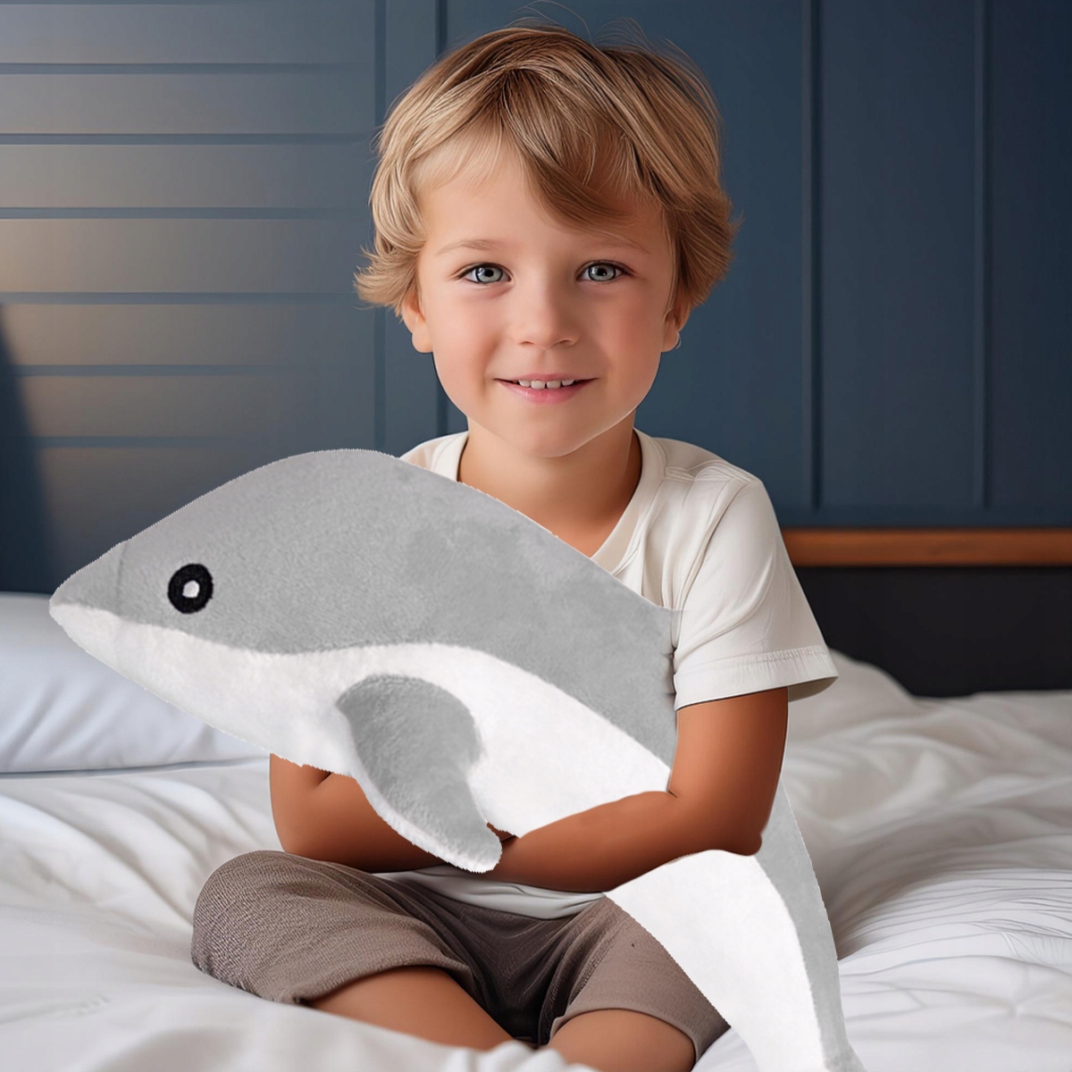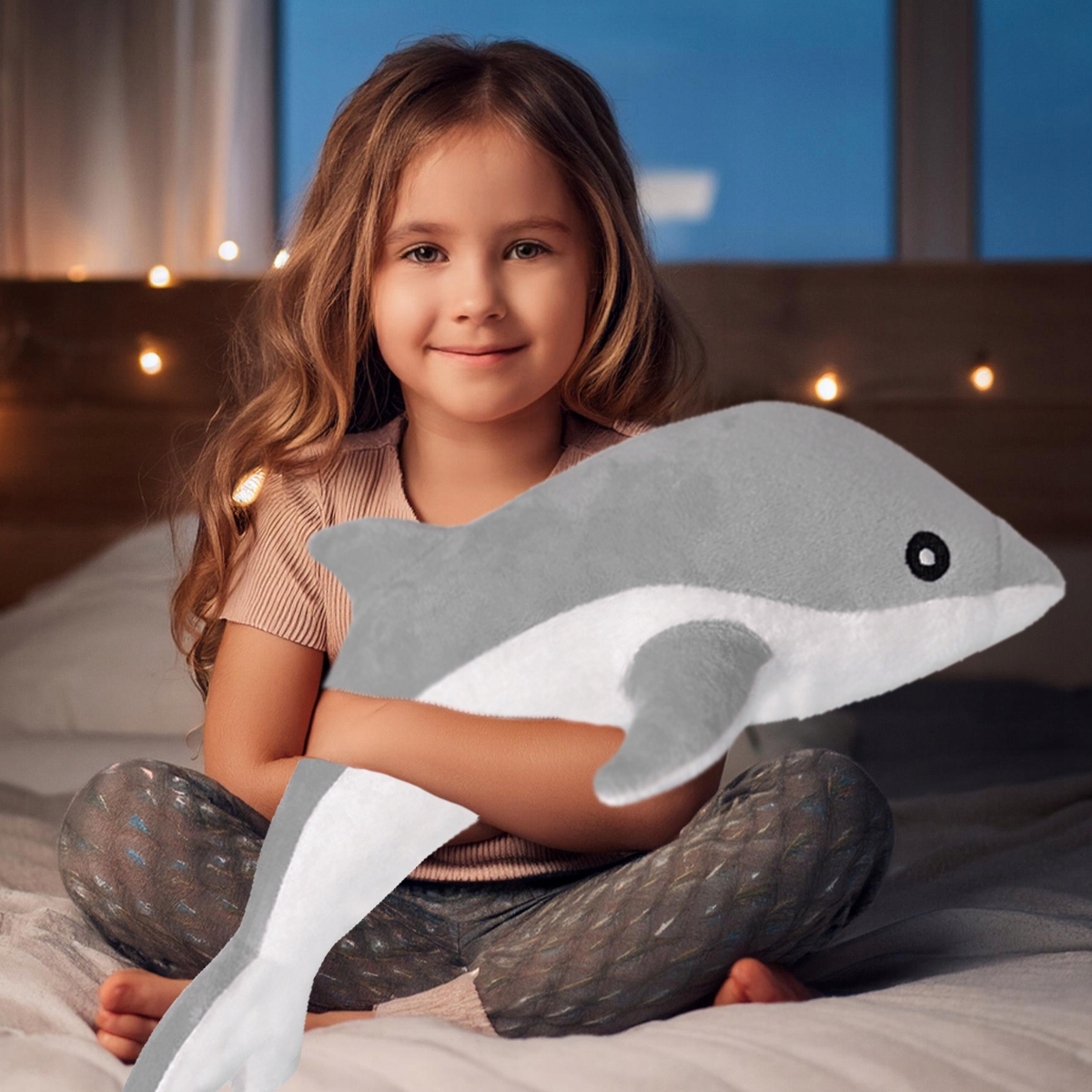 Привітний плюшевий дельфін приємний на дотик, тому швидко стане незамінним компаньйоном вашої дитини. Плюшевий ведмедик гнучкий, тому ви можете нахилятися і обіймати його скільки завгодно. Талісман також може служити зручною подушкою, яка допоможе вам заснути. Опудало чарівне, м'яке та легке, тому воно швидко захопить серце кожної дитини та стане розрадою у важку хвилину.