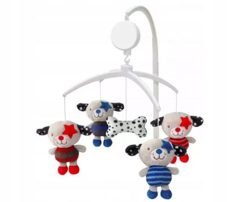 Мобіль Baby Mix над ліжко з плюшевими іграшками сприяє розвитку координації очей і рук дитини та заспокоює дитину перед тим, як заснути.