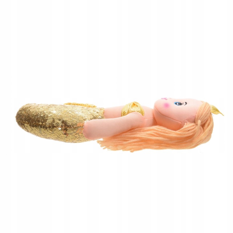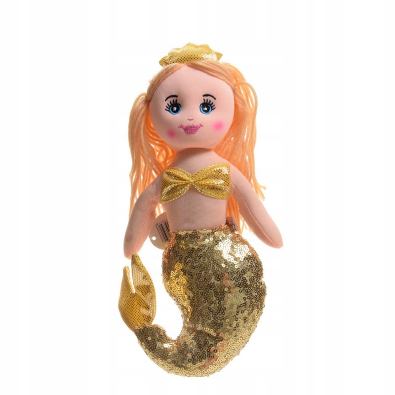 Унікальна м'яка іграшка у вигляді русалки. У ляльок красиві хвостики, прикрашені блискітками, корони на головах і гарне довге волосся. Ляльки представлені в трьох кольорах на вибір: золотому, сріблястому та рожевому. Вони м'які та приємні на дотик.