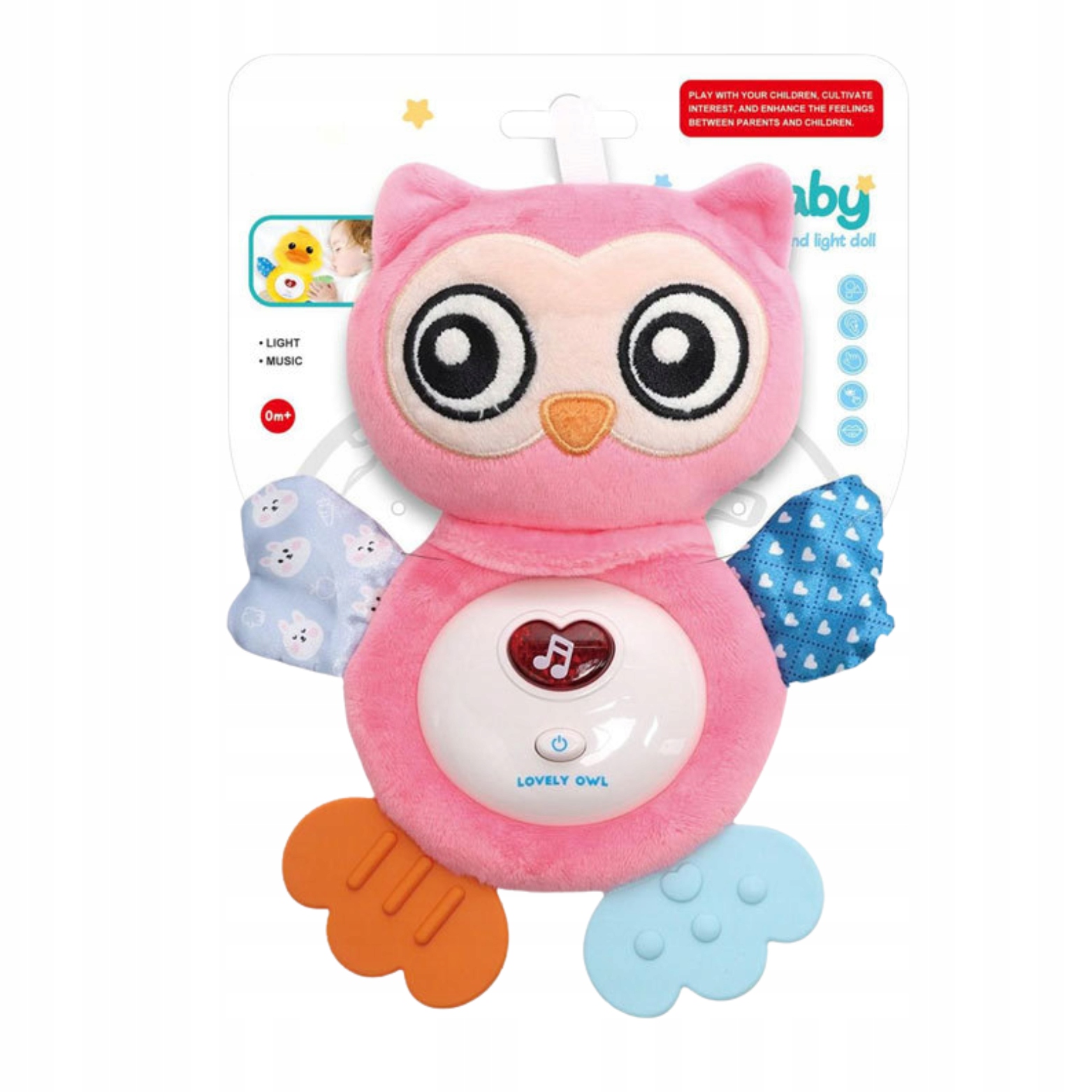 Сова оснащена делікатним світлом , що додає чарівності іграшці і створює приємну атмосферу при прокладанні спати. Це тонке світло заспокоює дитину, створюючи умови для тихе засинання. Інтер'єр сови прихований музикантом із м'якими і заспокійливими звуками , допомагаючи дитині спокійно заснути. Музичну коробку легко видалити, що дозволяє адаптувати іграшку до індивідуальних потреб.