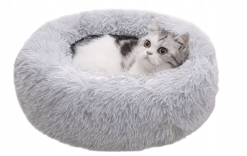 ПЛЮШЕВЕ ЛІГВО ДЛЯ КОТА-СОБАКИ М'ЯКА ВОЛОХАТА ПОДУШКА СІРА 50 СМ