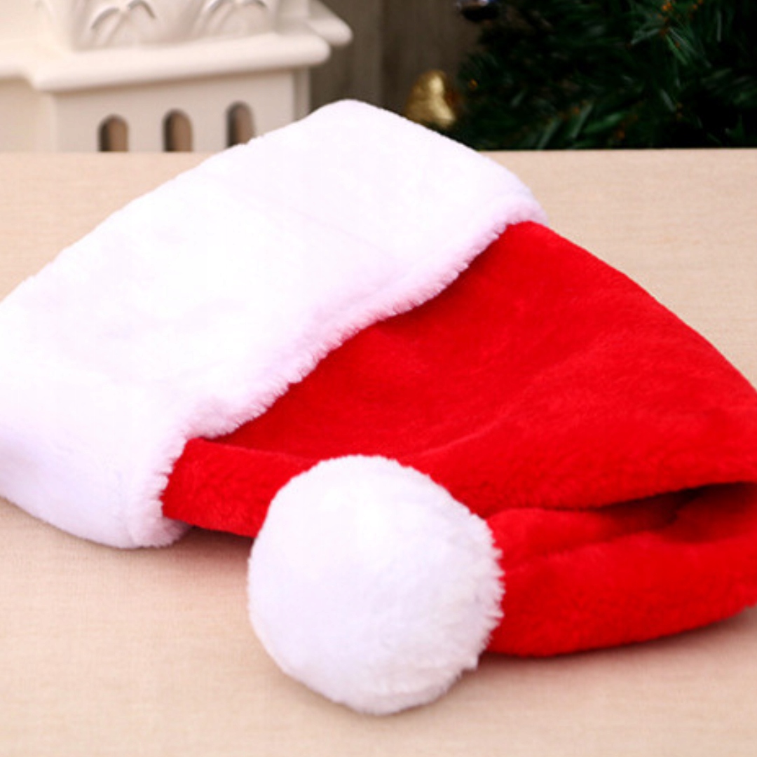 ПЛЮШЕВИЙ КАПЕЛЮХ САНТИ З ПОМПОНОМ, РІЗДВЯНА ВЕЧІРКА ВИДОВА
