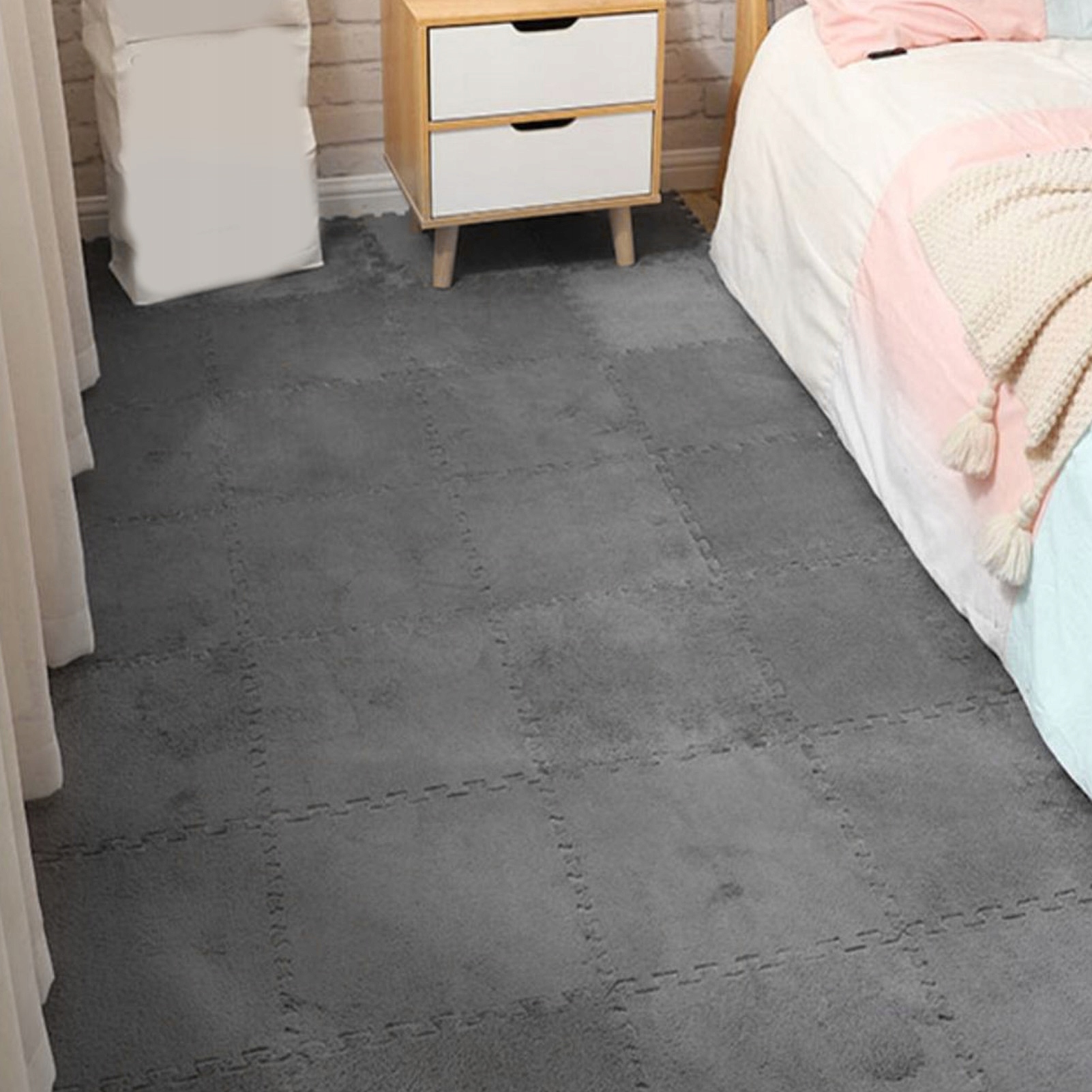 10 шт. Плюшевий килимок для підлоги запобігає ковзанню, потовщена щільна килимова плитка для спальні