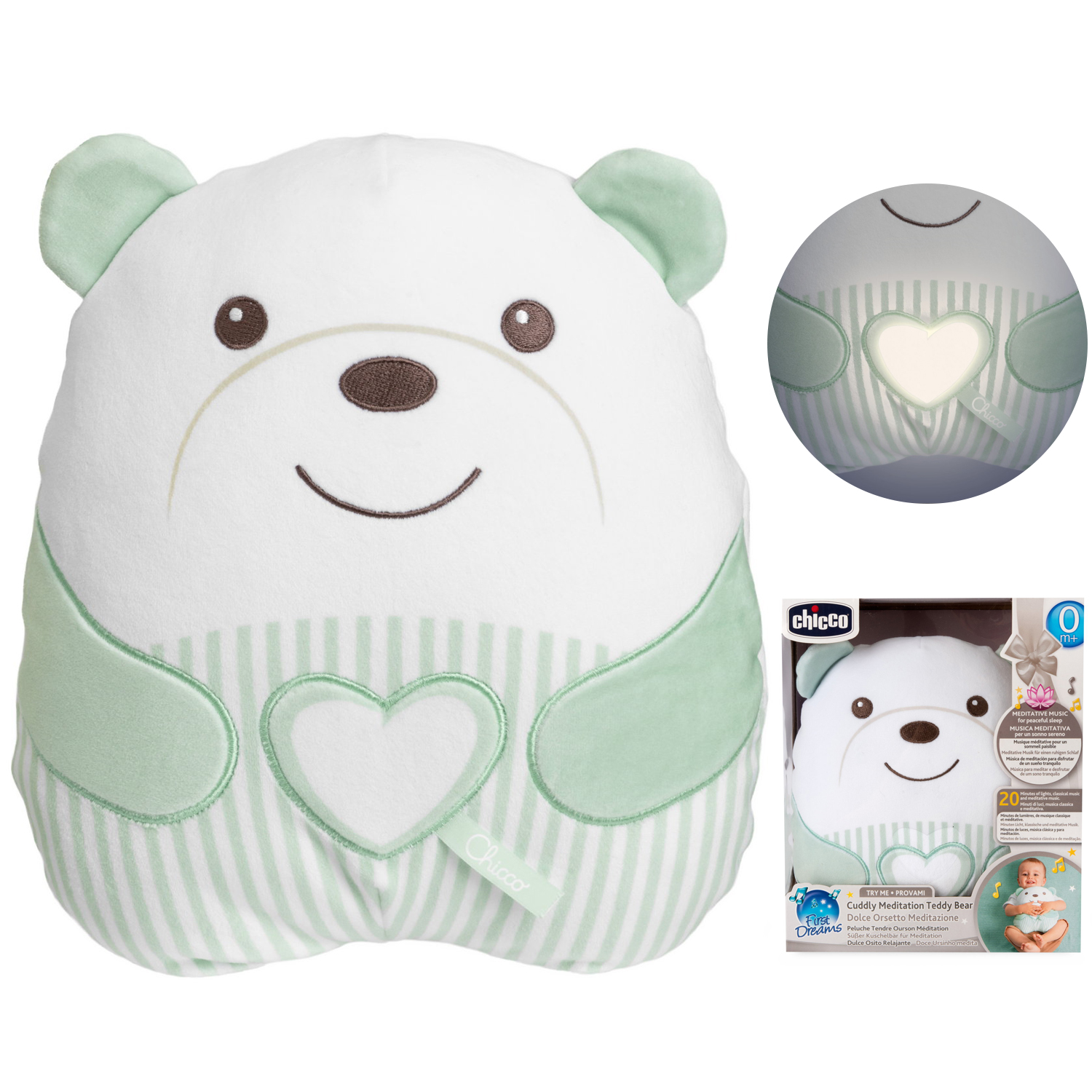 Плюшевий плюшевий ведмідь сплять із зеленою підсвічуванням Chicco