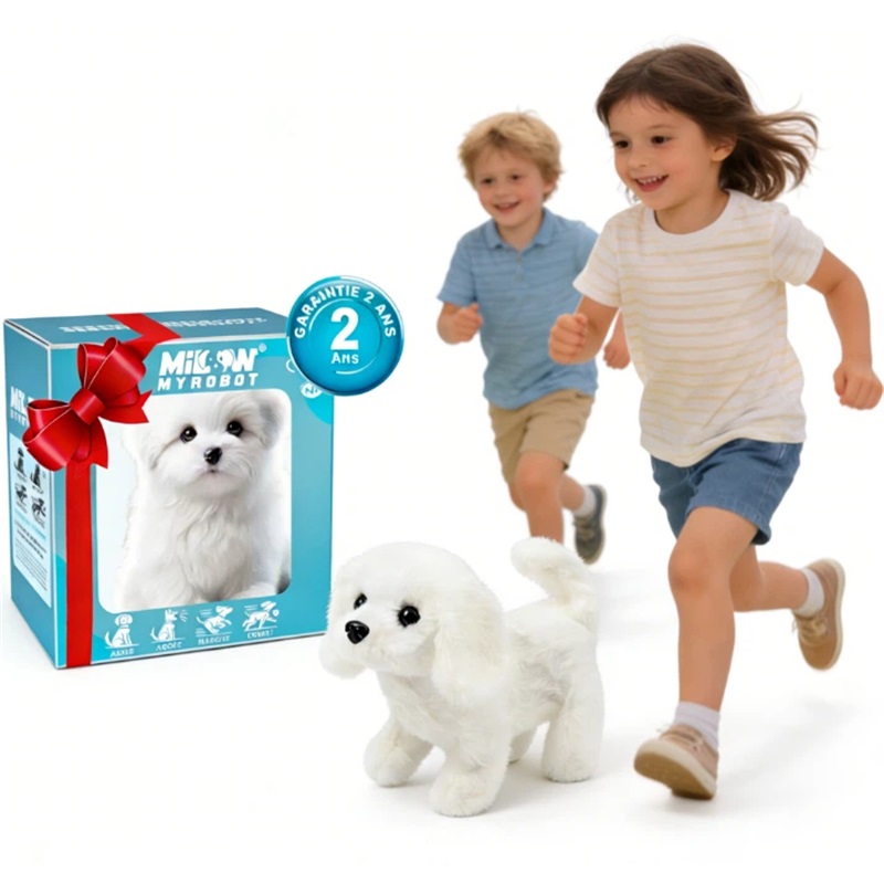 Основні характеристики: плюшевий матеріал найвищої якості. Мох м'який, приємний на дотик і безпечний для дітей (адаптований до стандартів NF/CE). Легко чистити - просто замініть або почистіть поверхню щіткою. Інтерактивні ігрові режими Ходьба та біг: собака рухається по підлозі, як справжнє цуценя. Звуки собаки: видає реалістичний гавкіт і відчуває дотик (наприклад, стрибає, коли ви торкаєтеся). Розслаблюючий компаньйон: ідеально підходить для сну чи розваг - знімає стрес і стимулює уяву.