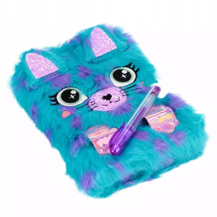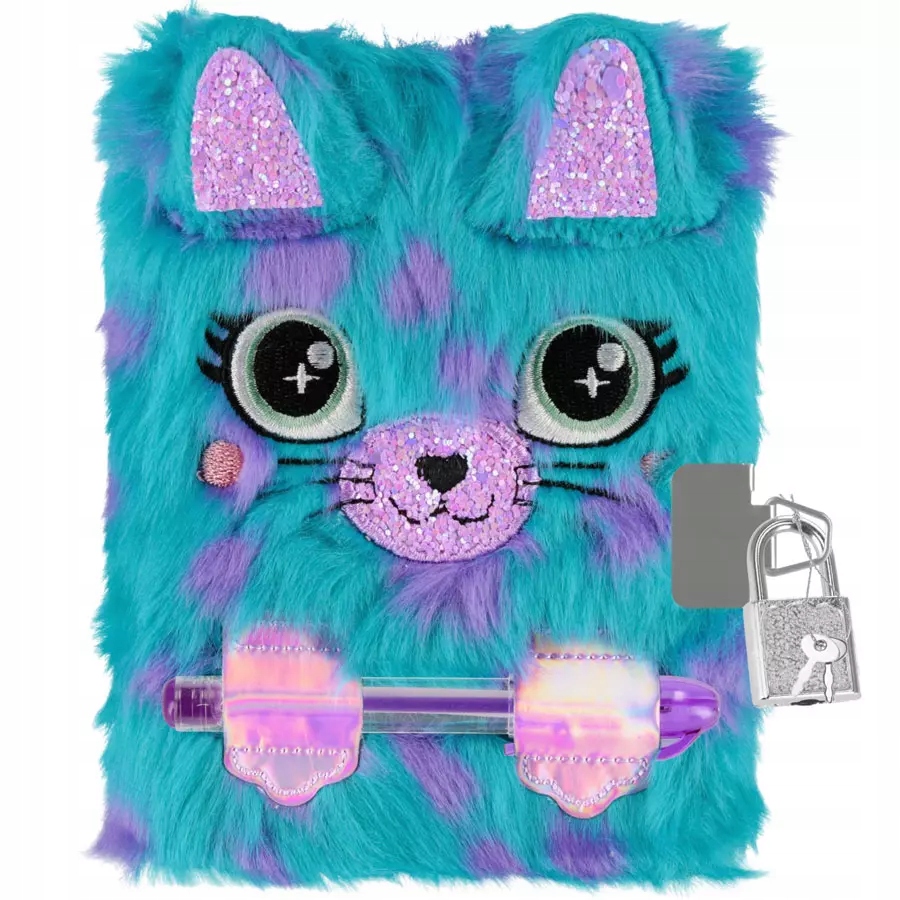 Щоденник із колекції STARPAK, у якому дитина зберігає маленькі таємниці. Щоденник закривається на замок і доступний у синьому та фіолетовому кольорах. Обкладинка покрита м'яким плюшем і малюнком із зображенням тварини кота.