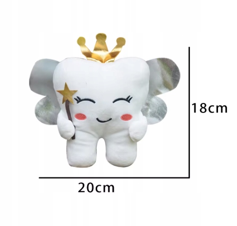 М’який і чарівний плюшевий плюшевий зуб -це ідеальний подарунок для дітей, які переживають першу іграшку, що падає! Талісман виготовлений з високоякісної плюшів, що робить його приємним на дотик і ідеально підходить для обіймів. Чудова ідея для подарунка для маленьких любителів казки, а також символічна прикраса для стоматологів та стоматологів.