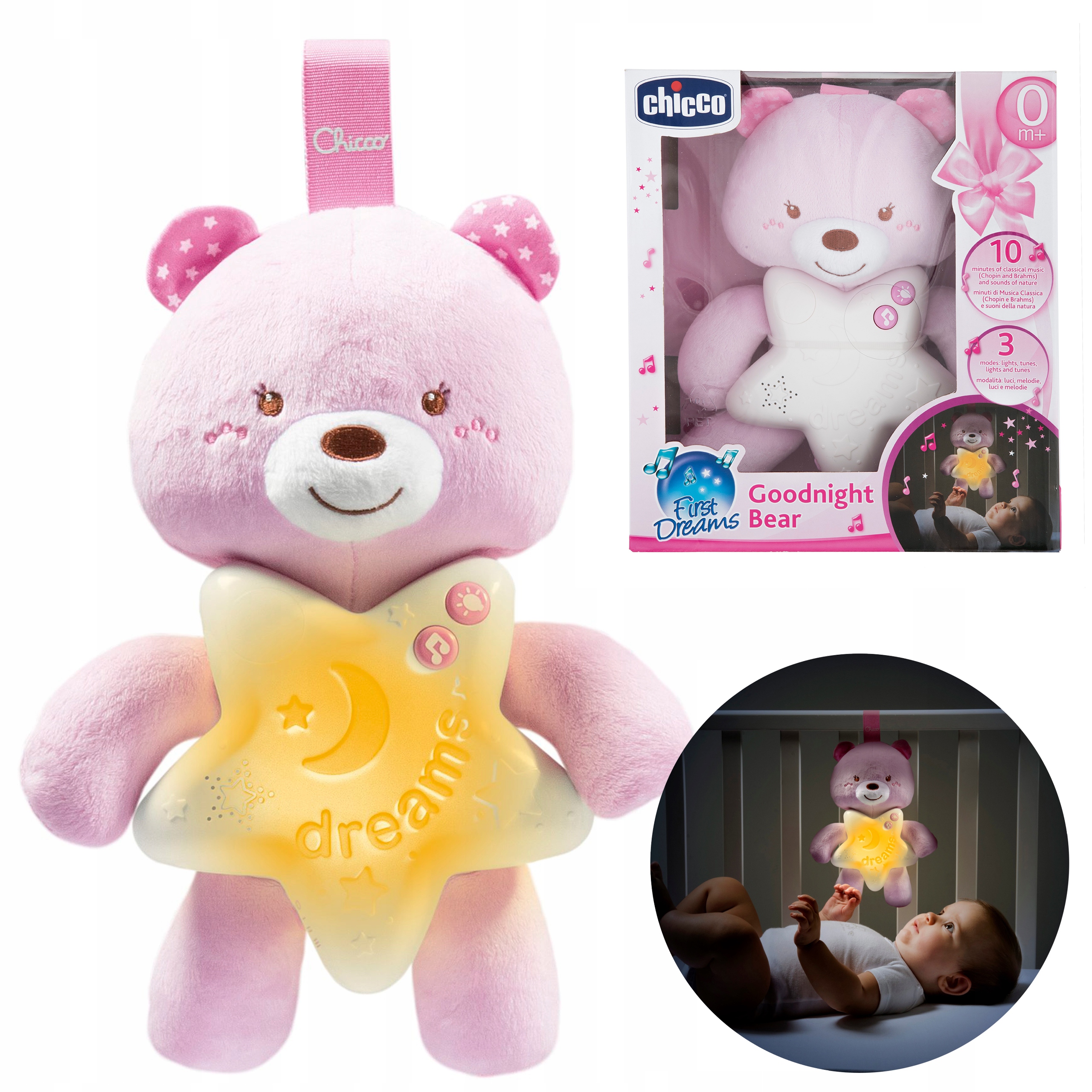 М'який плюшевий перший друг малюка, із дисплеєм у формі зірки замість животика, ведмедик Тедді з лінії First Dreams - прикріплений до дитяче ліжко - з мелодіями та нічником, щоб супроводжувати дитину під час засинання. 10 хвилин класичної музики (Шопен, Брамс) і звуків природи (морські хвилі, спів птахів, весняний дощ).