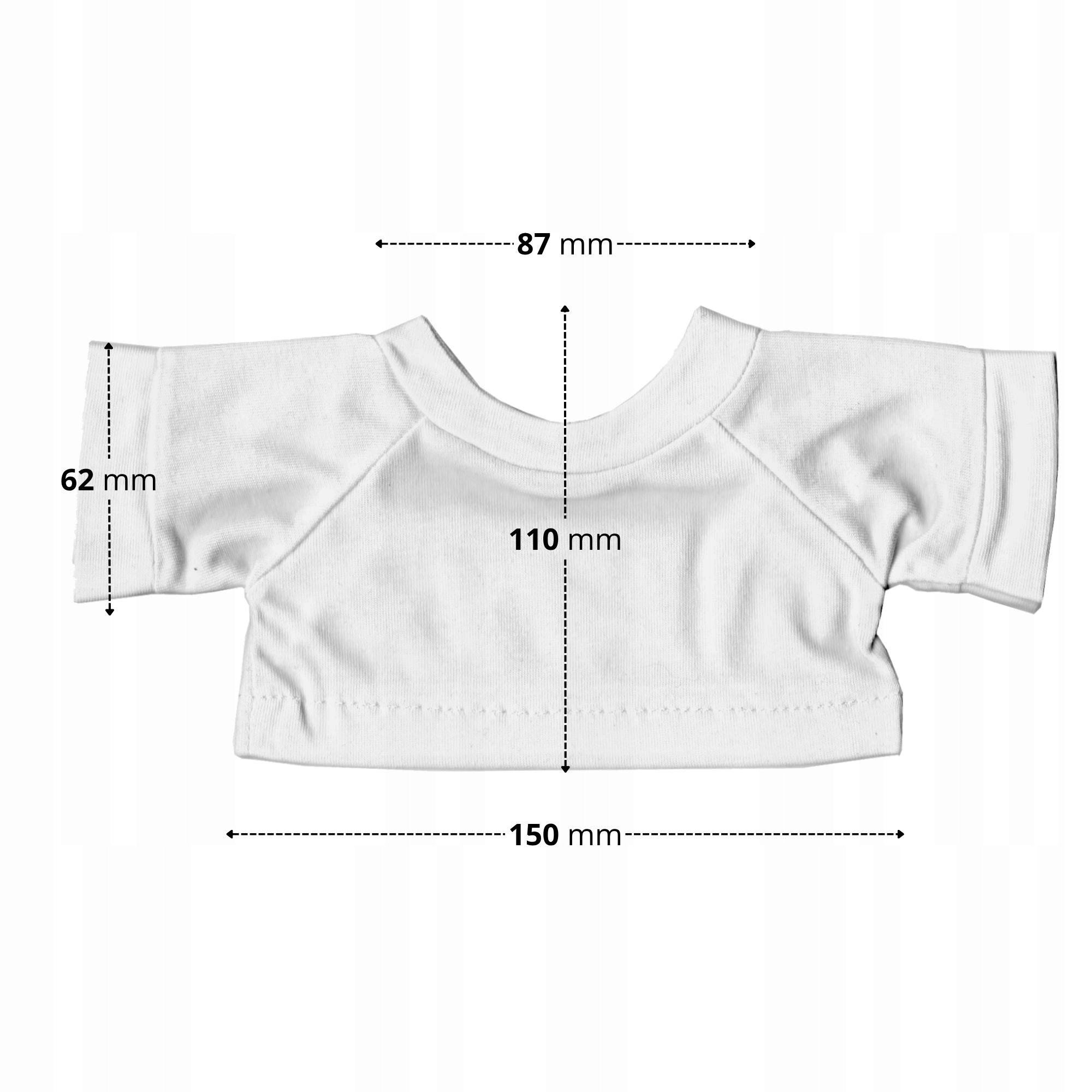 Плюшевий ведмедик поставляється з білою футболкою. Ви можете розмістити на ньому персоналізовану графіку, логотип або просто прикрасити його відповідно до власних уподобань.