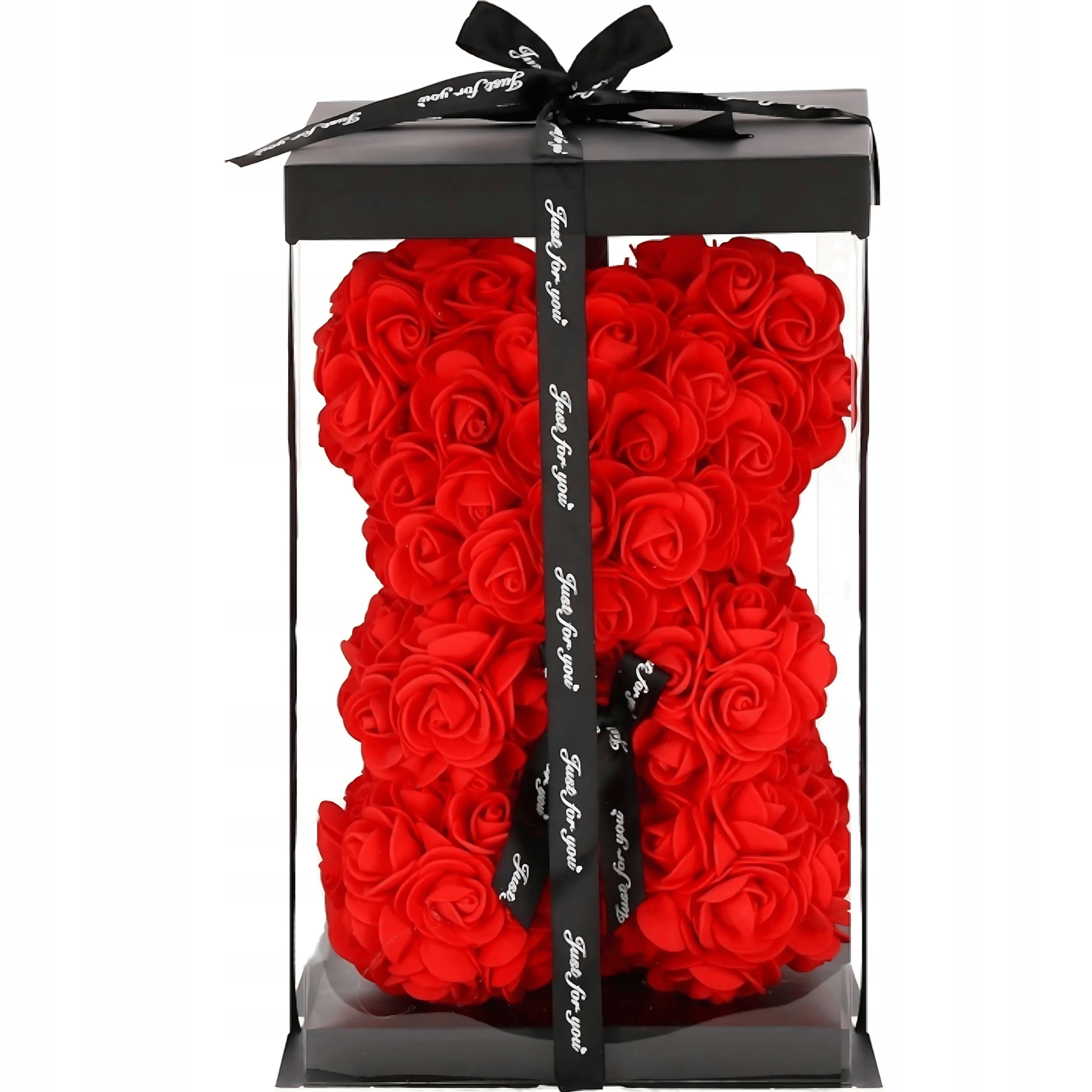 ліжко з великим 25 см плюшевого ведмедика з подарунком коробки троянд Бок для Дня Святого Валентина