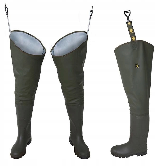 Короткі вейдери Pros виготовляються в Польщі з високоякісного водонепроникного матеріалу Plavitex Heavy Duty. Цей матеріал дуже міцний і водночас гнучкий. Завдяки цьому вейдерси не сковують рухів. Вони мають міцно приварені високоякісні гумові чоботи та регульовані еластичні застібки, які можна закріпити на поясі. Технологія двостороннього зварювання швів гарантує водонепроникність і робить вейдерси довгими сезонами.