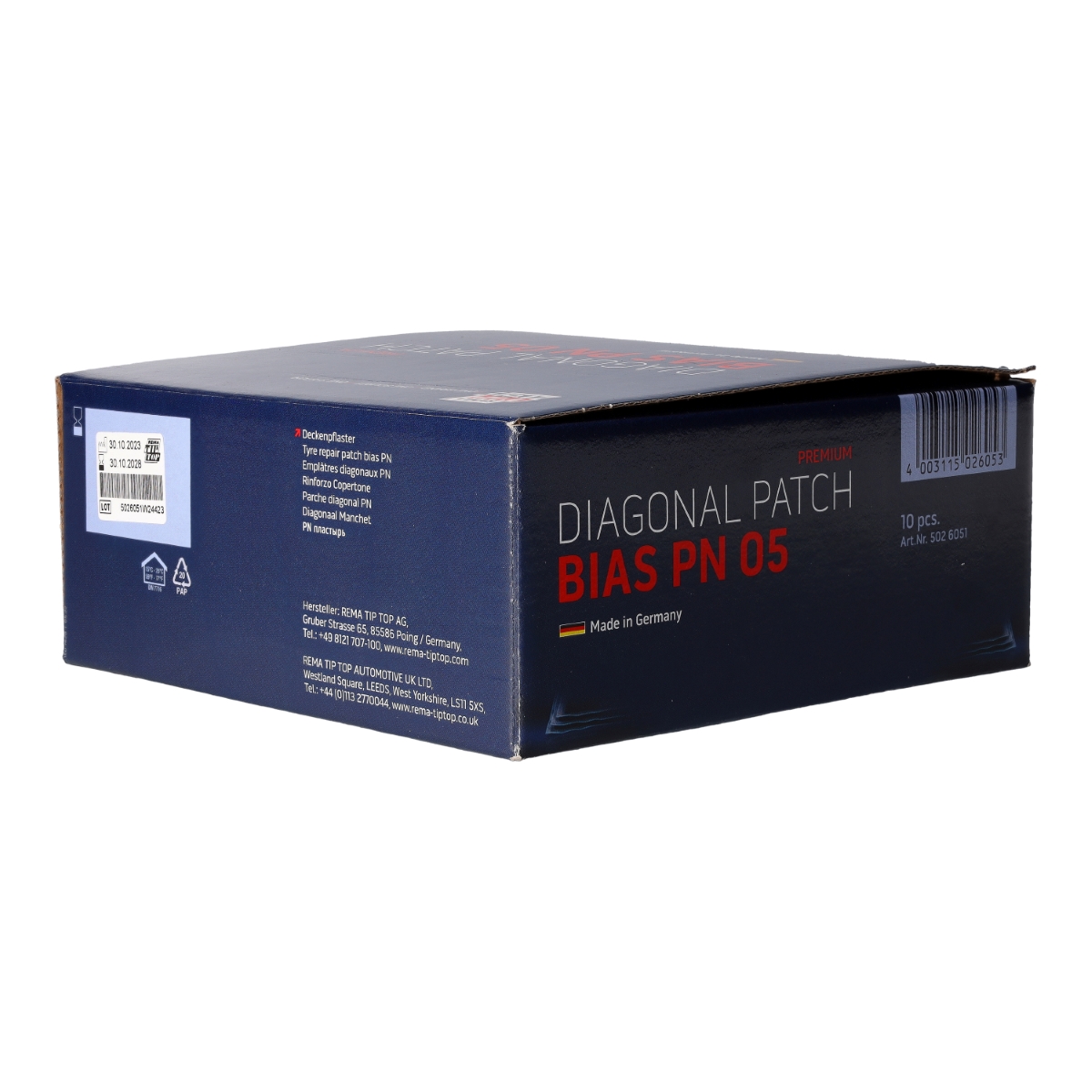 Діагональний внесок PN 05 Premium Company Rema TIP для постійного ремонту діагональних шин як в лобі, і збоку. Пошкодження сумішшю MTR Rubbrer та нагрівання воронки пошкодження в термопресі. Може використовуватися у всіх системах вулканізації з 18-150 градусів C.