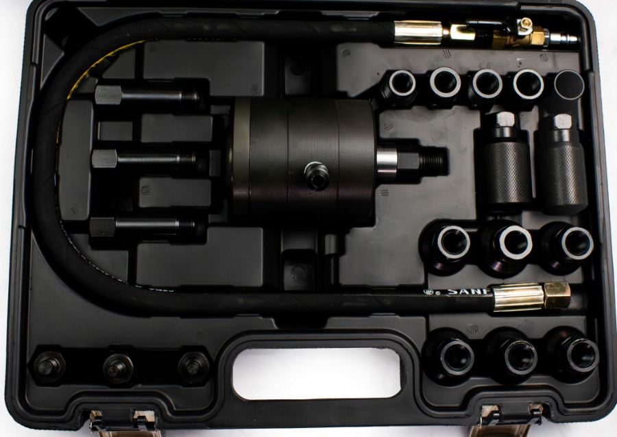 - Центральний Welt: міцний пневматичний інструмент, який є серцем набору, адаптованим для чинення значного тиску, необхідного для витягування інжекторів.
