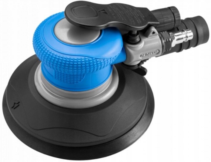 Пневматична ексцентрикова шліфувальна машина з пилозбірником працює від потоку стисненого повітря під відповідним тиском. Коливання 2,5 мм забезпечує оптимальну обробку поверхні. Диск м'ясорубки оснащений липучкою, яка дозволяє прикріплювати паперові диски. У комплект входить шланг для підключення шліфувальної машини до пилососа і спеціальний мішок для викопаного матеріалу.